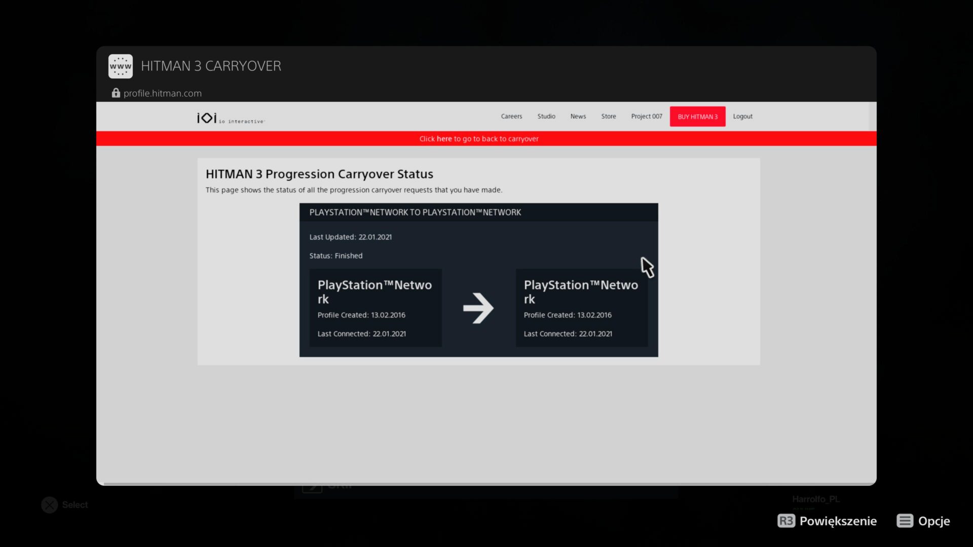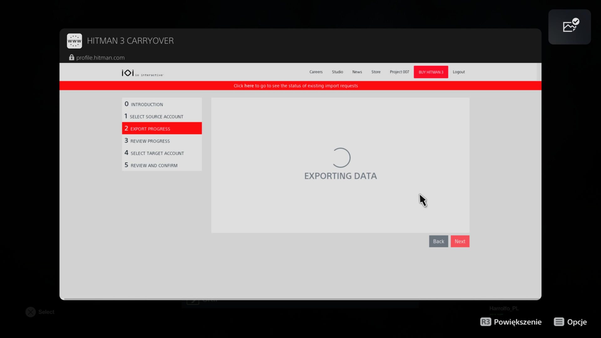 Na ostatniej stronie musimy zostać maksymalnie 5 minut, aby mieć pewność, że proces się udał. Ja ujrzałem poniższą informację już po niecałej minucie i mogłem się cieszyć przeniesionym do HITMAN 3 postępem. Jak widzicie, jest to proces bardzo mało skomplikowany.