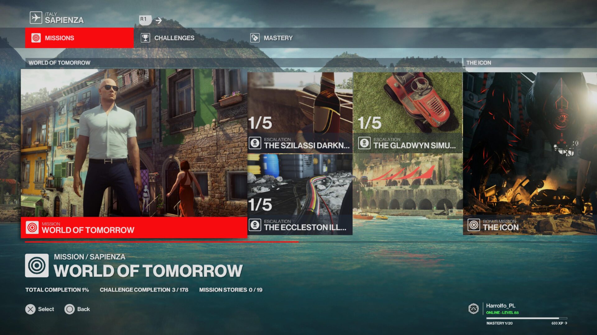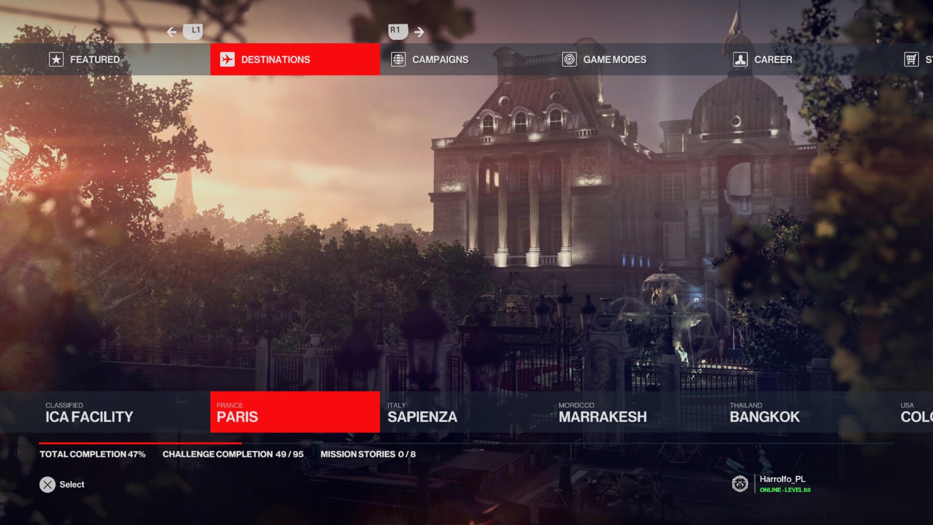 Po chwili widzimy podsumowanie naszych dokonań w poprzednich odsłonach. Niestety, nie ma się co nim zbytnio sugerować – na razie nasz progres nie jest idealnie liczony. Pozostaje mieć nadzieję, że IO Interactive dopracuje tę kwestię.