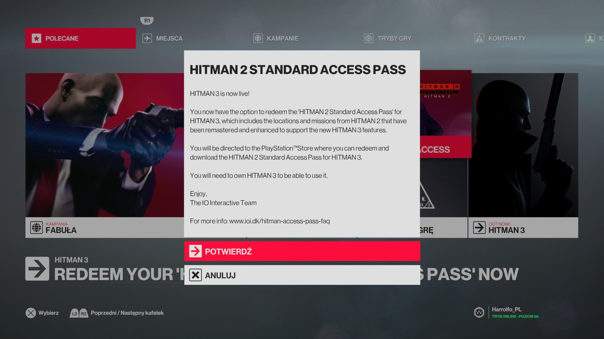 Aby móc zagrać w misje z HITMAN 2 w trójce, musimy włączyć dwójkę i przejść do Sklepu w menu gry. Alternatywnie możemy oczywiście wybrać HITMAN 3 – HITMAN 2 ACCESS z zakładki Polecane. Następnie POTWIERDZAMY i pobieramy Access Pack, który doda poziomy z HITMANA 2 do trzeciej odsłony. Na końcu wyłączamy “dwójkę”, włączamy HITMAN 3 i możemy cieszyć się ulepszonymi poziomami z poprzedniej części.