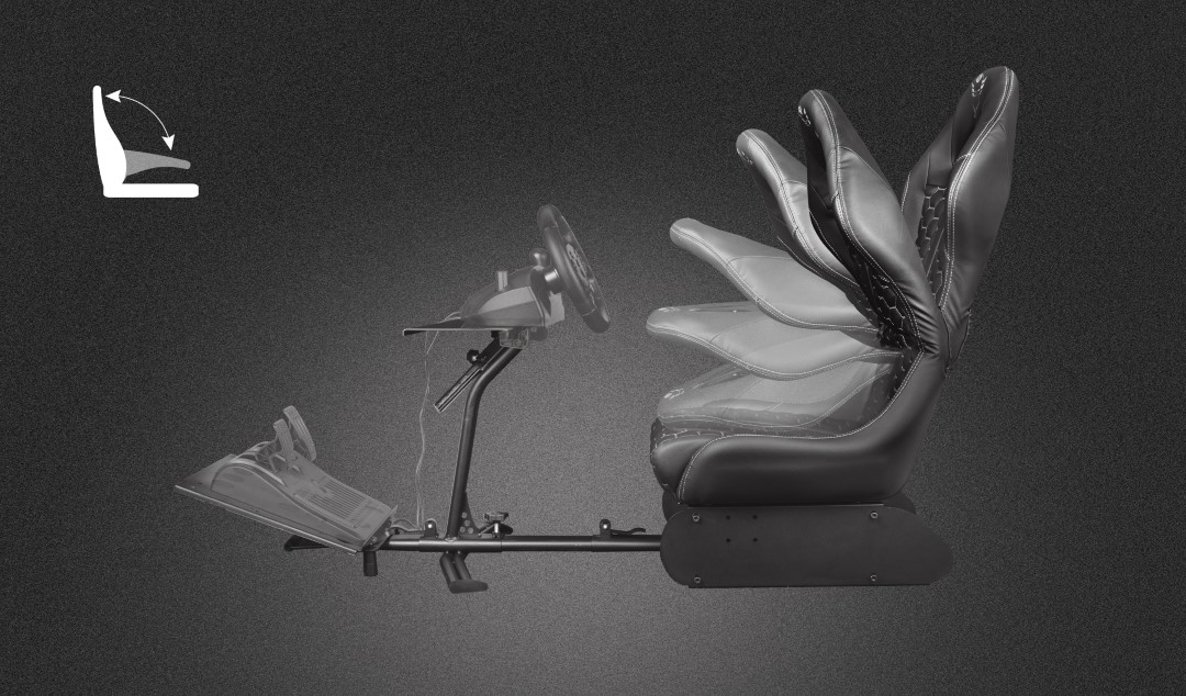 Sama metalowa konstrukcja stelaża także jest regulowana w wielu miejscach i możemy m.in. ustawić długość zestawu, dzięki temu nawet osoby mierzące dwa metry będą mogły swobodnie ścigać się w testowanym fotelu. Wytrzyma on duże obciążenie; według zapewnień producenta może w nim siedzieć osoba ważąca do 150 kg. Regulowana jest także wysokość półki, do której montujemy kierownicę oraz możemy regulować kąt nachylenia metalowego elementu, do którego montujemy pedały.