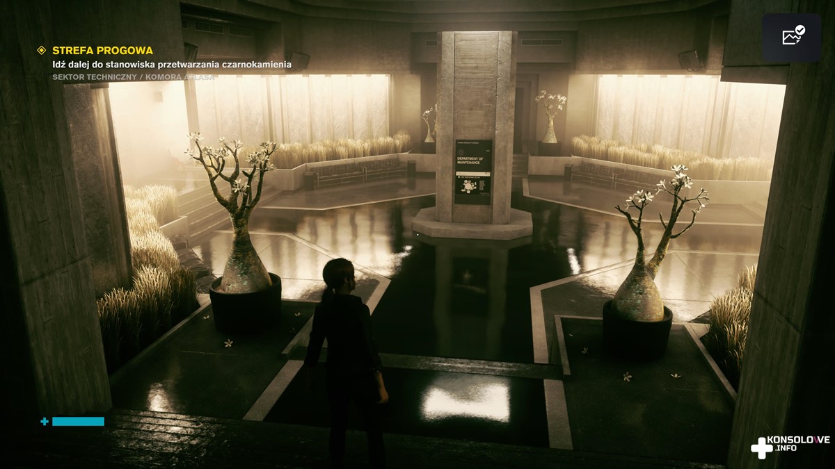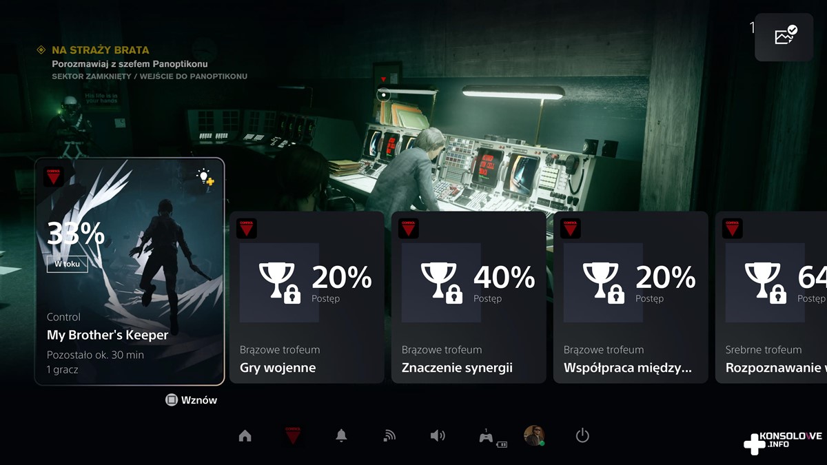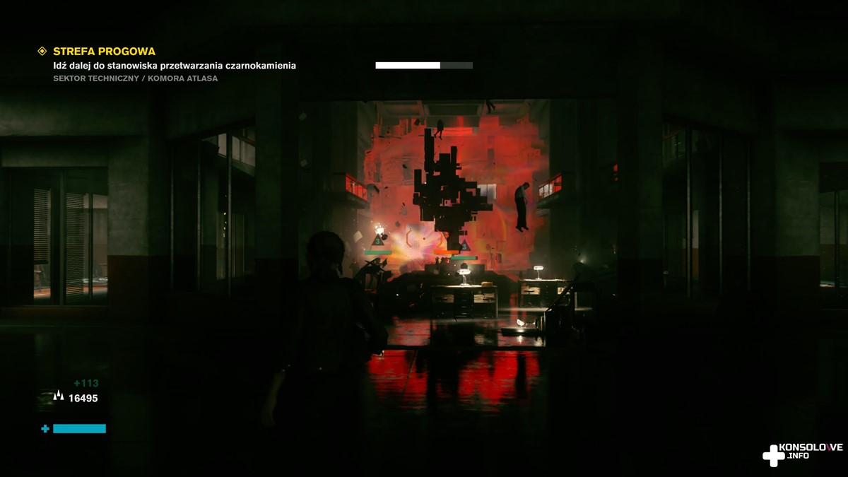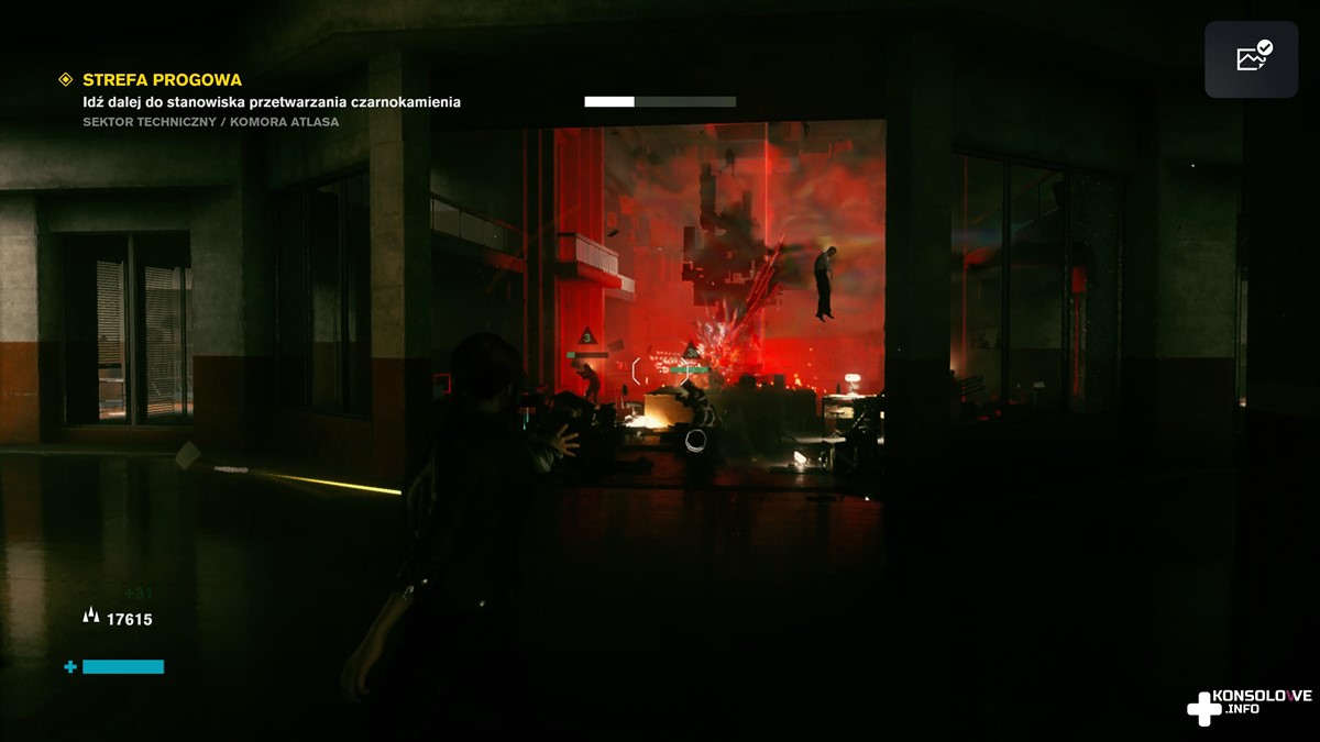 Control: Ultimate Edition wykorzystuje również funkcje charakterystyczne dla konsoli PlayStation 5. Możemy więc czuć każdy stawiany przez Jesse krok dzięki efektom dotykowym, a oddawanie strzałów z serwobroni będzie się wiązało z koniecznością wywarcia silniejszego nacisku na spusty pada DualSense. Oczywiście możemy wyłączyć te funkcjonalności – w menu znajdziecie odpowiednią opcję. O ile do efektów dotykowych nie mam zastrzeżeń, o tyle zawiodłem się na stopniu zaimplementowania adaptacyjnych triggerów – spust każdej formy broni odznacza się takim samym naciskiem. Szkoda. Tytuł od Remedy Entertainment obsługuje również karty aktywności, pokazujące nam, na jakim etapie wykonywania misji jesteśmy i ile czasu powinno nam zająć jej ukończenie. Trofea polegające na powtarzaniu jakiejś aktywności określoną ilość razy mają też wskaźnik procentowy, dzięki któremu wiemy, kiedy możemy się spodziewać odblokowania odznaczenia.