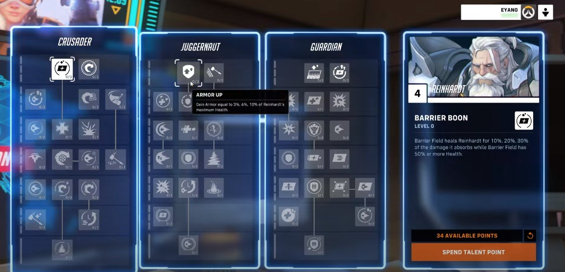 Blizzard chciałby, aby gracze wcielający się w dużych bohaterów mieli aktywniejszy udział w walce, a nie tylko stali i bronili słabszych. Reinhartd będzie mógł dwa razy rzucić młotem oraz w dowolnym momencie wyłączyć swoją szarże, którą także znacznie łatwiej ma być kontrolować.