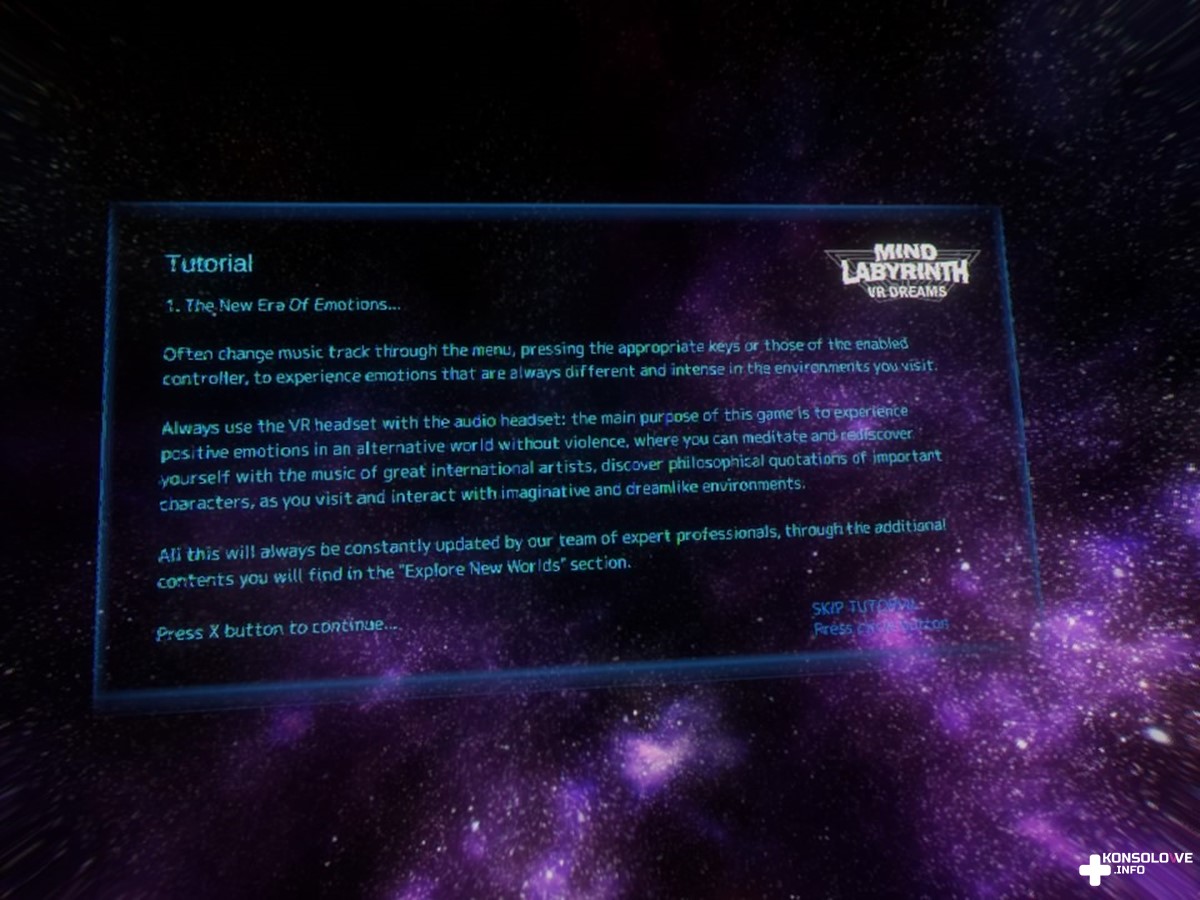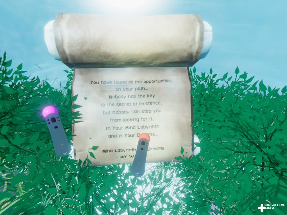 Po włączeniu Mind Labyrinth: VR Dreams mamy do wyboru jeden z dwóch układów sterowania – jeden z nich wykorzystuje pada DualShock 4, a drugi kontrolery ruchowe PlayStation Move. Ja zdecydowałem się na dedykowane PS VR kontrolery. Raz, że nie mam już konsoli PS4 i jej pada, a dwa – zawsze, gdy to możliwe, staram się korzystać z Move’ów w wirtualnej rzeczywistości. Uważam, że są one w stanie wpłynąć zdecydowanie korzystniej na immersję niż pad. Po podjęciu tej decyzji znalazłem się w tajemniczym miejscu, z którego mogłem udawać się w stronę kilku portalu. Już tu spodobała mi się grafika – dokonanie Europejczyków wygląda naprawdę ładnie z daleka. Woda bardzo ładnie odbija kolory portali, co samo w sobie może zachwycić. Skierowałem się do bramy oznaczonej jako Tutorial i spotkało mnie mało rozczarowanie. Okazało się bowiem, że samouczek został zrealizowany jedynie jako kilka stron tekstu, który możemy przeczytać (ukończenie Tutoriala nie jest obligatoryjne), chcąc dowiedzieć się czegoś na temat rozgrywki. Mając za sobą tak surowe przedstawienie zasad, udałem się do pierwszego z 10 poziomów, które miałem przejść.