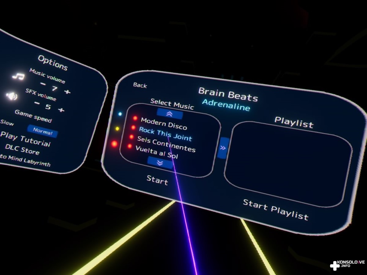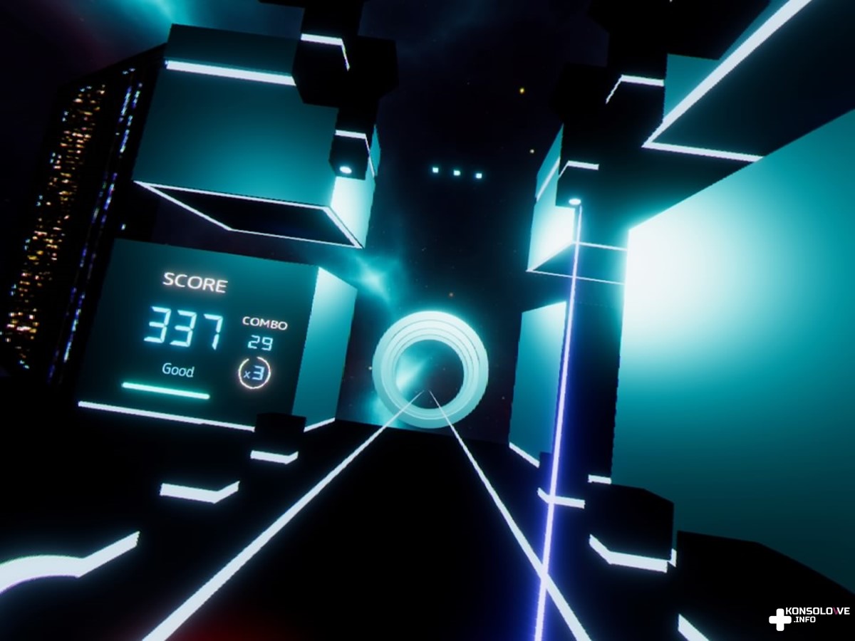 Kod recenzencki na Mind Labyrinth:VR Dreams dostałem w pakiecie z DLC – Brain Beats. Nie grałem jeszcze w Beat Saber, ale wydaje mi się, że wyżej wymieniony dodatek mógłby konkurować z tą grą. To tu właśnie i tylko tu dzieło Frost Earth Studio staje się grą. Do rozgrywki wykorzystywane są dwa kontrolery Move, za pomocą których wchodzimy w odpowiednie interakcje z mknącymi w naszym kroku blokami. Występują one w różnych kształtach (kwadraty, kule i okręgi) oraz kolorach (białe, pomarańczowe, czerwone i niebieskie). Kwadraty wymagają od nas przecięcia ich za pomocą katany (którą aktywujemy, naciskając spust na PS Move), kule musimy dotknąć obiema dłońmi, natomiast okręgi tylko jedną – w odpowiednim kolorze. Białe i pomarańczowe kształty również dotykamy oburącz (lub obiema katanami), czerwone wymagają użycia lewej dłoni, niebieskie – prawej. Oczywiście wszystko jest wykonywane w rytmie lecącego w tle nagrania i nierzadko będziemy musieli przekładać dłonie na krzyż, by jednocześnie dotknąć odpowiednich elementów we właściwy sposób, nie wspominając o przecinaniu bloków we właściwym układzie. Niekiedy będzie też trzeba uniknąć mknącej ku nam bomby, należycie wychylając głowę. Możemy też tworzyć własne playlisty nagrań w Brain Beats, a także wybierać tempo, w jakim będą ku nam płynęły bloki. Przyznaję, że bardzo dobrze bawiłem się w tym trybie – spora w tym zasługa mistrzowskiej perfekcji odwzorowania ruchów. Jeśli chodzi o stronę techniczną, recenzowana produkcja jest niemal doskonała.
