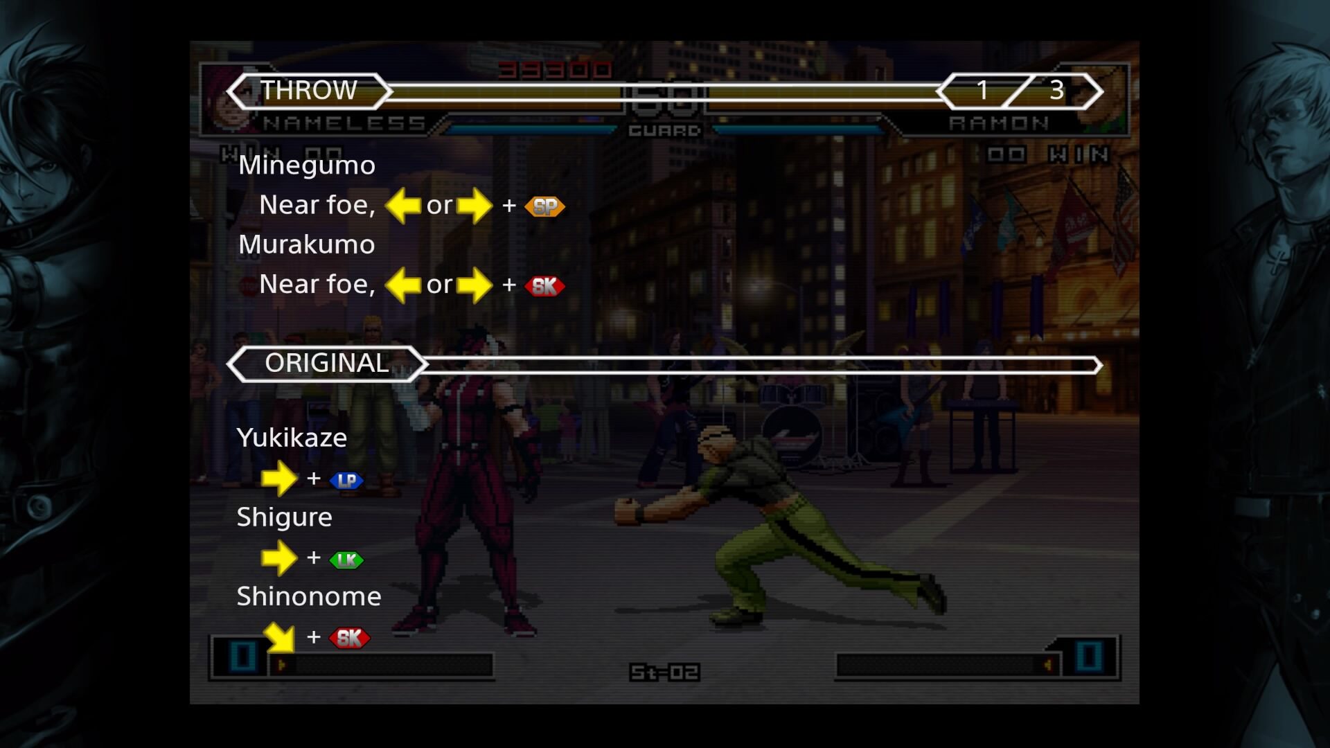Spędzając swego czasu niezliczone godziny z Mortal Kombat 11, miałam opanowane wszystkie ruchy najbardziej charakterystycznych postaci. Żadne kombo ani fatality nie stanowiło dla mnie problemu. Po jakimś czasie nie sprawdzałam już nawet listy ruchów. Sytuacja jednak znacznie zmieniła się w The King of Fighters 2002: Unlimited Match. Dawno nie grałam w bijatykę na konsoli, jednak ilość kombinacji, jakie trzeba wykonać nieco mnie pokonała. Wiele nie brakowało, żeby pad wypadł mi z rąk, bo tak spociły mi się dłonie przy wyczerpujących próbach. Na całe szczęście dostępny Nameless zachęcił mnie do dalszej zabawy. Nadal jednak uważam, że szybkość moich palców drastycznie spadła i trzeba coś z tym zrobić. Oznacza to, że rozgrywka nie będzie przyjemna dla osób, które wcześniej nie miały styczności z tytułami o podobnej tematyce. Skończy się to korzystaniem ze wszystkich możliwych przycisków w losowej kolejności na zasadzie “może się uda”.