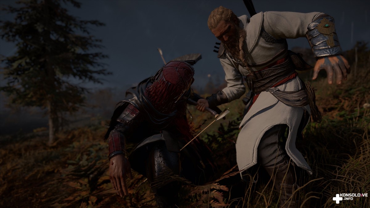 Boska Nagroda zawiera również strój bohatera początkowych odsłon serii Assassin’s Creed – Altaira. Przyznaję, że Eivor wygląda dość zaskakująco w tych szatach – zwłaszcza w trakcie walki, która jest niesamowicie brutalna. Pisałem oczywiście o tym w mojej recenzji. Jeśli nie odpowiada Wam taka aparycja wikinga, może spodoba się Wam inny pakiet zbroi i broni, który również wchodzi w skład wspomnianego zestawu. Niżej możecie zobaczyć, jak prezentuje się przebrany Eivor.