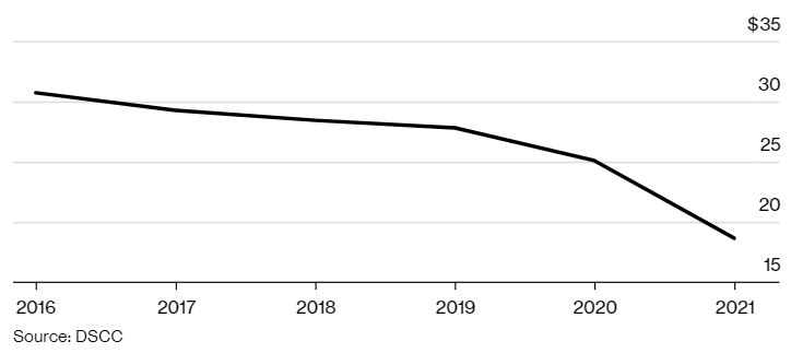 Szczegółów wciąż jest bardzo mało, ale już wiemy, że Samsung zacznie masową produkcję pierwszego miliona ekranów dla Nintendo już w czerwcu tego roku. Przypominam, że przekątna w standardowym Switchu to 6.2” (w wersji Lite to 5.5”). Nowy wyświetlacz będzie mieć 7”, ponadto wykonany będzie w technologii OLED. Zapewni to lepszy kontrast, nasycenie kolorów, jasność ale i żywotność baterii. Rozdzielczość na ekranie konsoli osiągnie maksymalnie 720p. Nie jest to mało, gdyż różnica z 1080p na tak małym ekranie zwyczajnie nie byłaby zauważalna. Dodatkową ważną zmianą jest wsparcie trybu 4K, gdy konsola będzie zadokowana. Szerszy ekran, może oznaczać również to, że nowy Switch będzie bardziej cienki niż swój poprzednik. Dlaczego Nintendo zdecydowało się na ekran typu OLED? Przez nadprodukcję cena tych ekranów dla interesującej nas przekątnej spadła przez ostatnie 5 lat o niemal 40%: