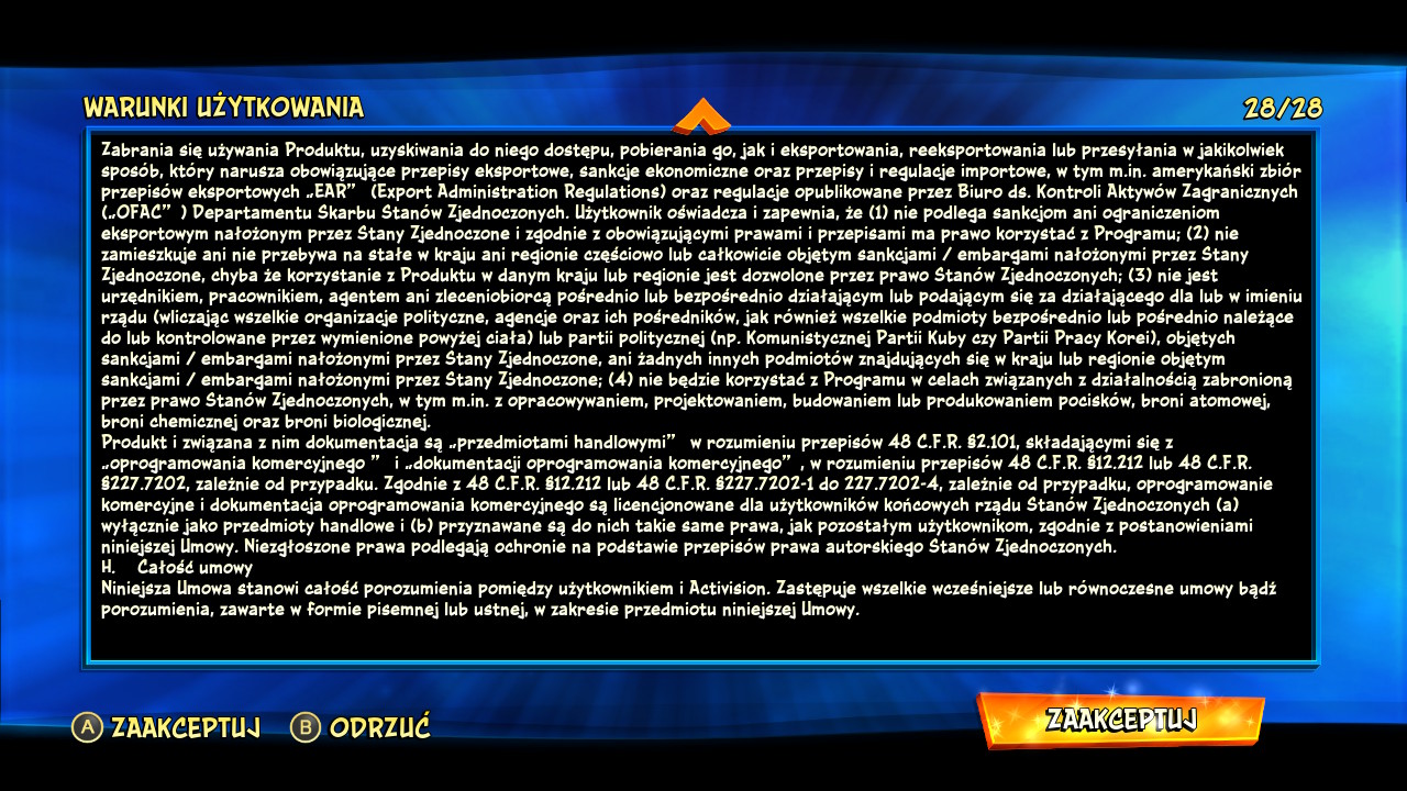 Zanim jednak zagłębimy się w świat szalonego jamraja, przyjdzie nam zobaczyć loga producenta i dewelopera, które są całkowicie nieme (pomimo że pojawia się na nich rozrabiający Crash). Przez chwilę pomyślałem, że coś jest nie tak z ustawieniami mojej konsoli. Dalej musimy dosłownie przeklikać dwa dwudziestoparostronicowe dokumenty i je zaakceptować. Nie chciałem zaczynać od tego akapitu, gdyż w przypadku Crash Bandicoot 4: It’s About Time pierwsze wrażenie na szczęście było jedynym zgrzytem z obcowania z tym tytułem.
