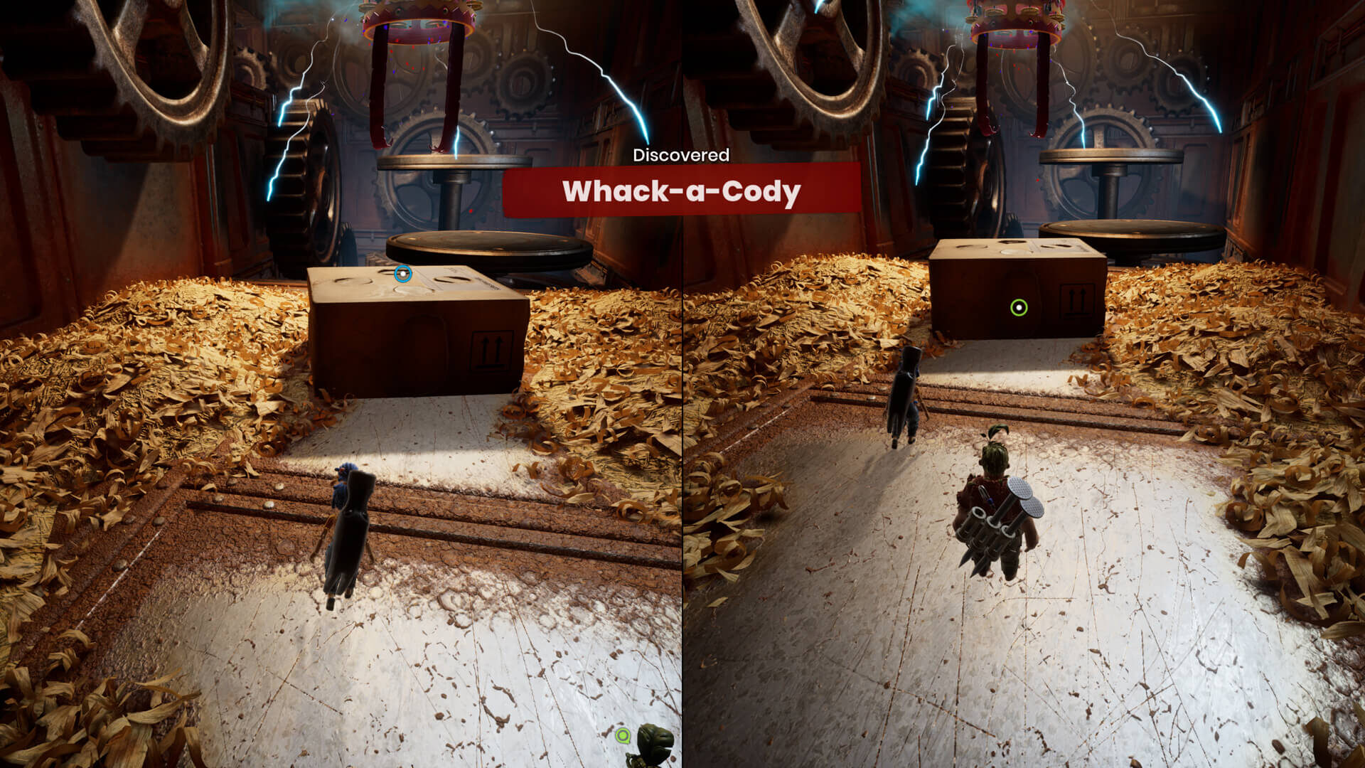 Każdy z graczy steruje swoją własną częścią ekranu, można się dowolnie oddalić (wiecie, grałam w Fable i wciąż pamiętam, że trzeba było się zawsze trzymać blisko), a obracanie kamery to czynność, którą będziemy robić dość często. Ta domyślna zachowuje się dobrze w większości przypadków, ale czasem trzeba jej pomóc.