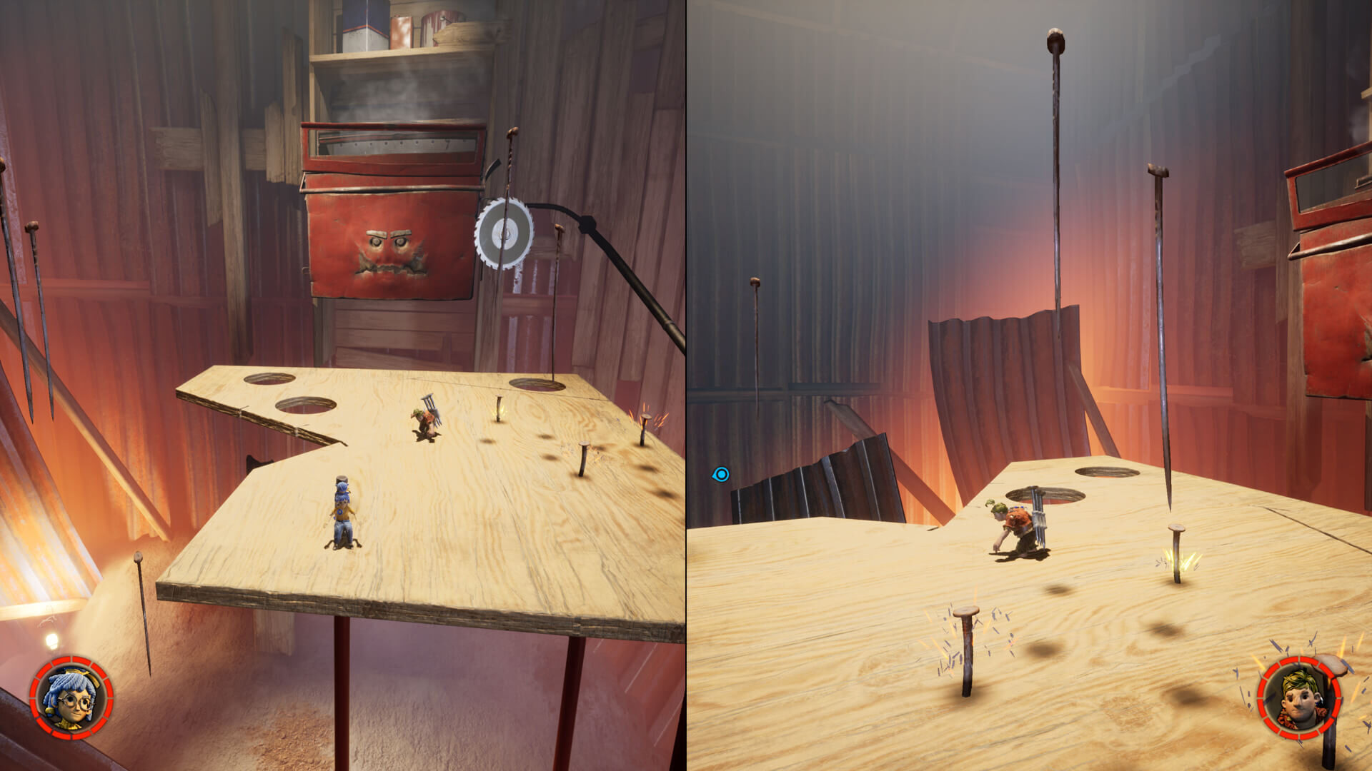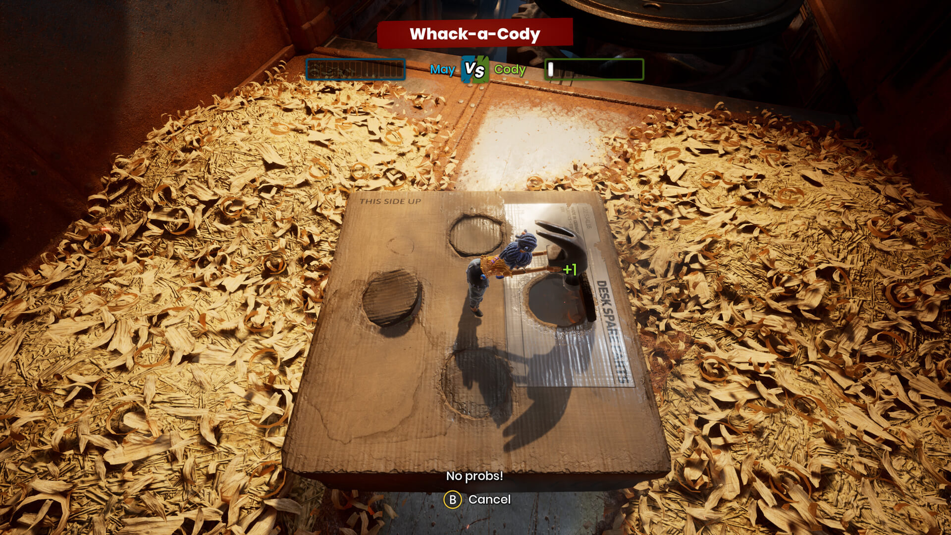 W jednym z pierwszych poziomów, May wyposażona będzie w metalową część młotka, a Cody w gwoździe. Umożliwią one odblokowanie przejść i poruszanie się po planszy, a współpraca (jak zawsze) będzie kluczowa. W sporo miejsc dostęp będzie miało tylko jedno z nich, a druga postać poruszać się będzie po innej ścieżce. Choć nie zawsze. Gdy na naszych plecach ląduje lasso, obie postacie przemierzają dokładnie te same platformy.