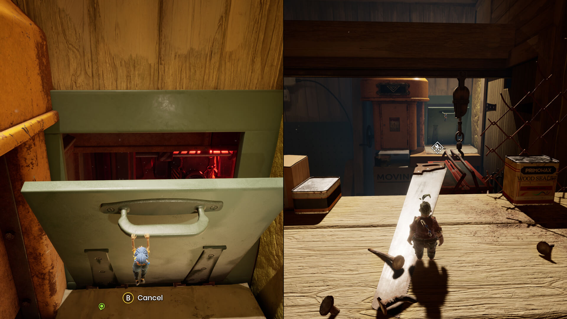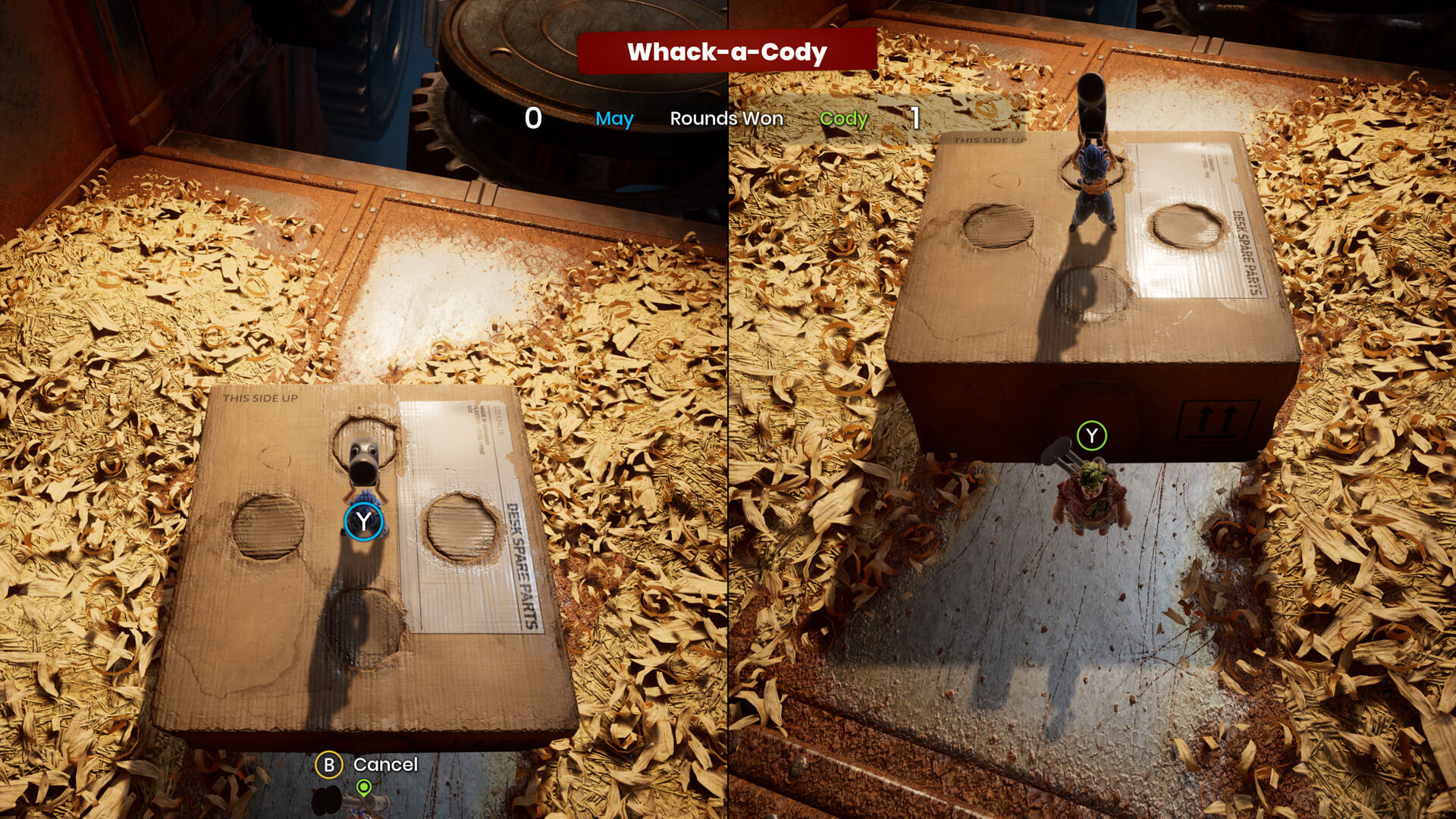 W jednym z pierwszych poziomów, May wyposażona będzie w metalową część młotka, a Cody w gwoździe. Umożliwią one odblokowanie przejść i poruszanie się po planszy, a współpraca (jak zawsze) będzie kluczowa. W sporo miejsc dostęp będzie miało tylko jedno z nich, a druga postać poruszać się będzie po innej ścieżce. Choć nie zawsze. Gdy na naszych plecach ląduje lasso, obie postacie przemierzają dokładnie te same platformy.