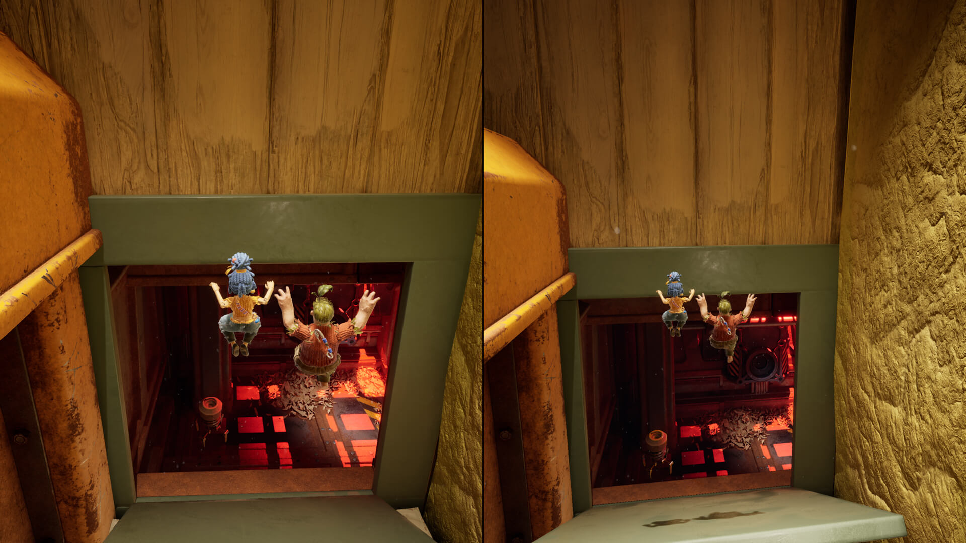 Mogliście już zwrócić uwagę, ale jeśli nie, It Takes Two to inny typ gry niż A Way Out. Jasne, kooperacja jest kluczowa, ale tu nie mamy gry akcji, tylko platformówkę z łamigłówkami. Mnóstwo tu skakania i zręcznościowych elementów, “dźwigni” do przełączenia, przycisków do kliknięcia, czy dobrze zsynchronizowanych interakcji. Czeka nas też ponad 20 minigierek do odkrycia oraz “typowe” w Hazelight zwolnienia przy skokach na pochylniach. Taka drobnostka, która w A Way Out mocno zapadła mi w pamięć.