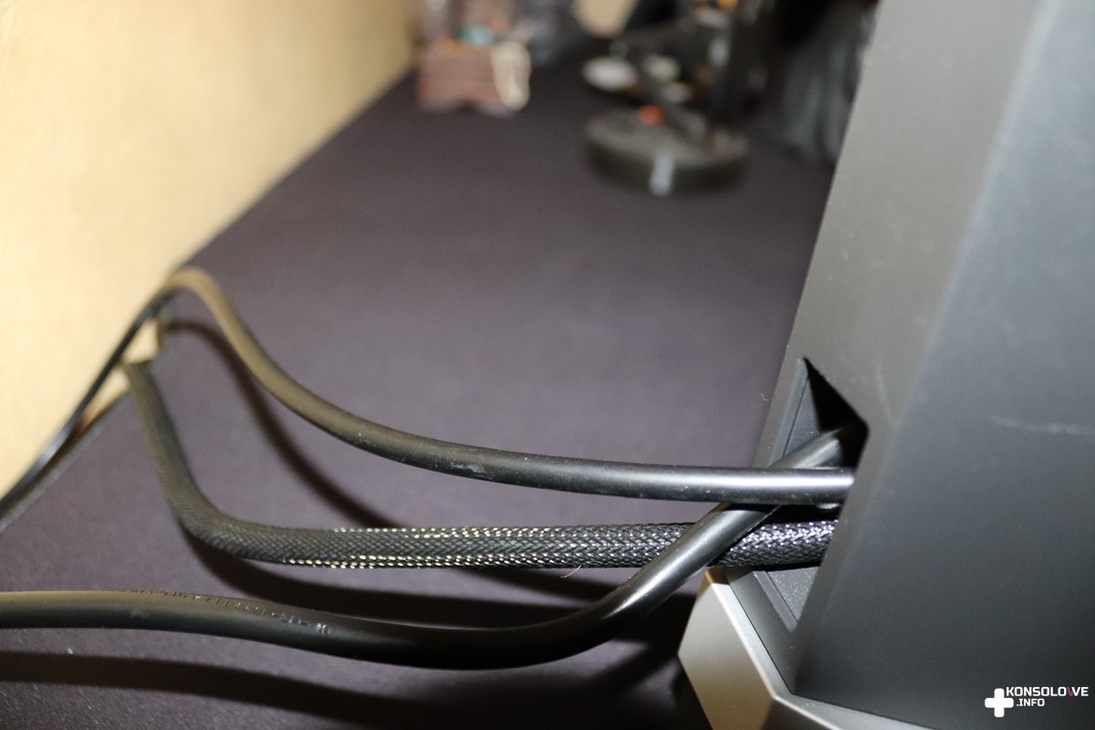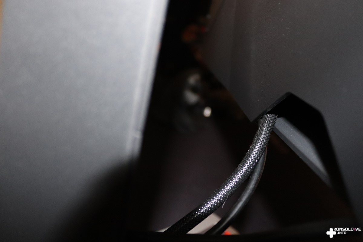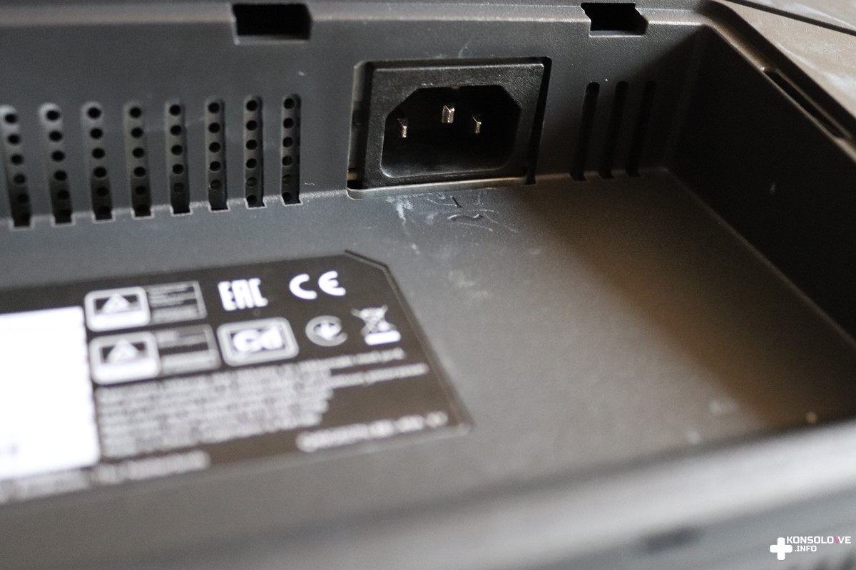 Na pochwałę zasługuje również sam wygląd EX2710. Monitor ten prezentuje się bardzo przyjemnie dla oka. Mimo że wydaje się być przeznaczony dla graczy, to nie uderza swym typowo gamingowym wyglądem. Ogromnym plusem jest dla mnie brak diod LED. Niepotrzebnie odwracałyby one tylko naszą uwagę od tego, co dzieje się na ekranie. Monitor jest stonowany jeśli chodzi o kolorystykę i właściwie jedynym kontrastującym elementem jest pomarańczowy pasek na podstawie. Dodaje on jednak całości charakteru, nie będąc jednocześnie agresywnym akcentem. Warto zaznaczyć, że wspomniana podstawa posiada ogumienie na spodzie. Dzięki temu nie będzie się ona ślizgała po postawieniu jej na biurku czy stole. Pozostając jeszcze przy opisie wyglądu monitora, nie mogę nie wspomnieć o specjalnym otworze w ramie. Dzięki niemu możemy łatwo zarządzać kablami wychodzącymi z monitora. Oprócz wspomnianego wcześniej joysticka sprzęt jest wyposażony również w przycisk iHDR na froncie oraz porty na tylnej ścianie.