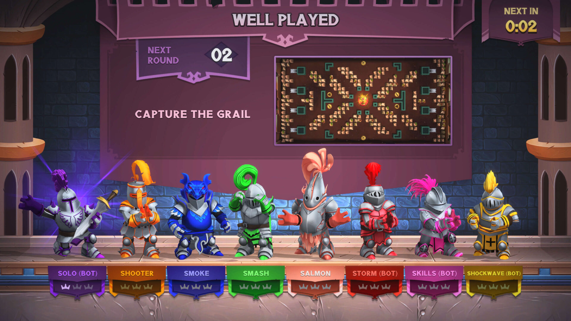 Każde starcie to kilka minut, domyślnie 2-3, a brać udział może do ośmiu graczy. Tyle też będzie na początku dostępnych postaci. Z czasem do tego grona dołączą też nowi rycerze, odblokowywani przez przeróżne wyzwania.