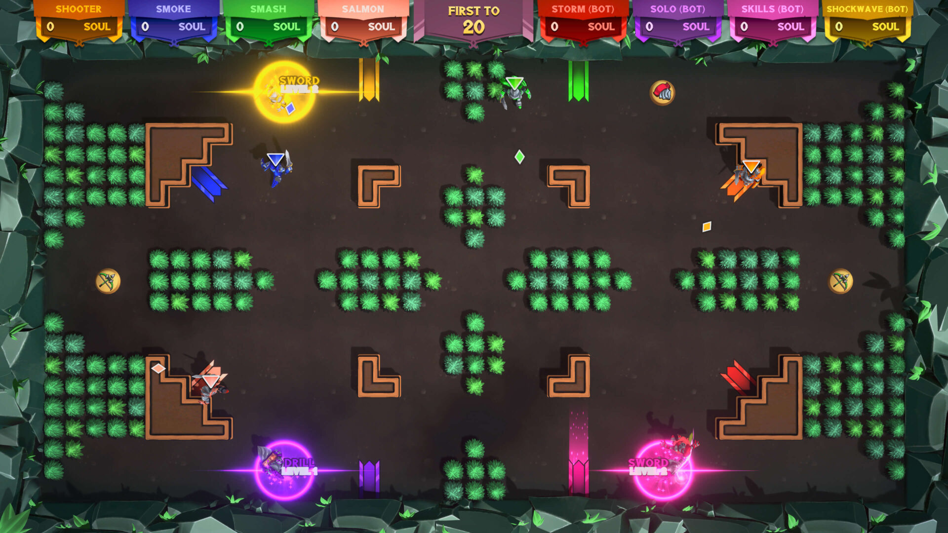 Na planszach znajdziemy zazwyczaj sporo “boostów”. Może to być lepsza broń, buty do szybszego biegania, tarcza, specjalne ataki czy koń. Boosty będą też mieć swoje poziomy, więc możemy biegać z długą lancą, albo kłusować na jednorożcu wygrywającą melodyjkę Nyan Cata. Urocze!