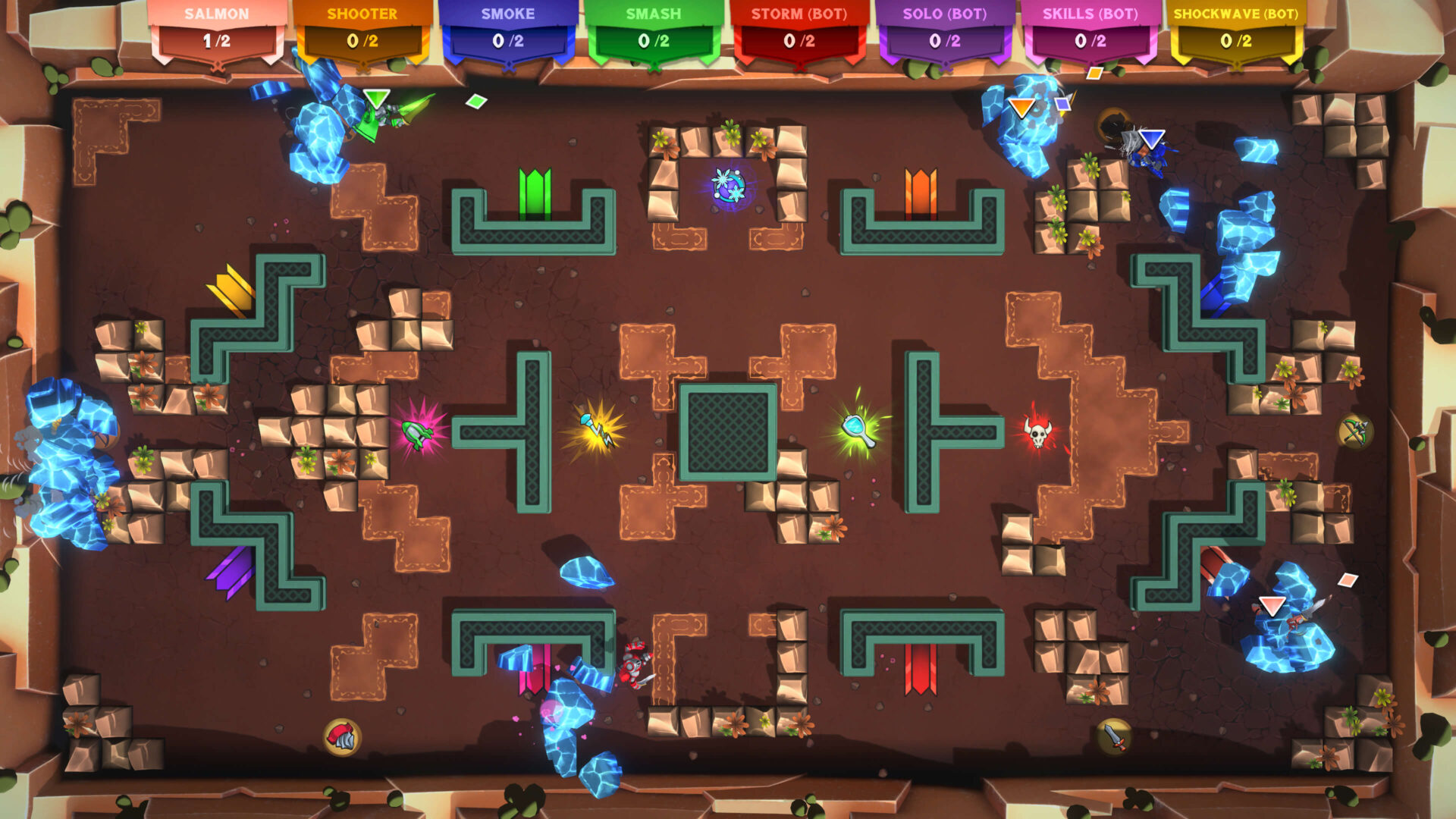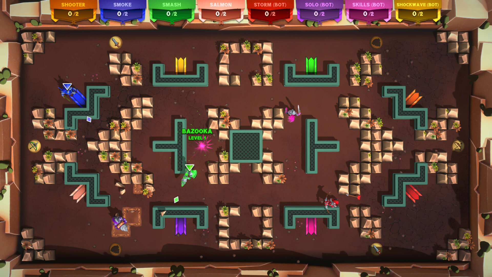W Knight Squad 2 mamy do dyspozycji całkiem sporo trybów gry: od Przejęcia Flagi, przez Dominację, Battle Royale, Juggernaut, czy piłkę nożną, do malowania planszy czy po prostu zabijania wszystkich innych na mapie, na punkty. Boty ustawić można na cztery różne poziomy trudności, od łatwego, po ekstremalny. Można grać w zespołach lub “każdy sobie”. Dzięki temu można dopasować rozgrywkę do poziomu graczy, czy zbalansować ją, gdy ktoś jest wyraźnie lepszy.