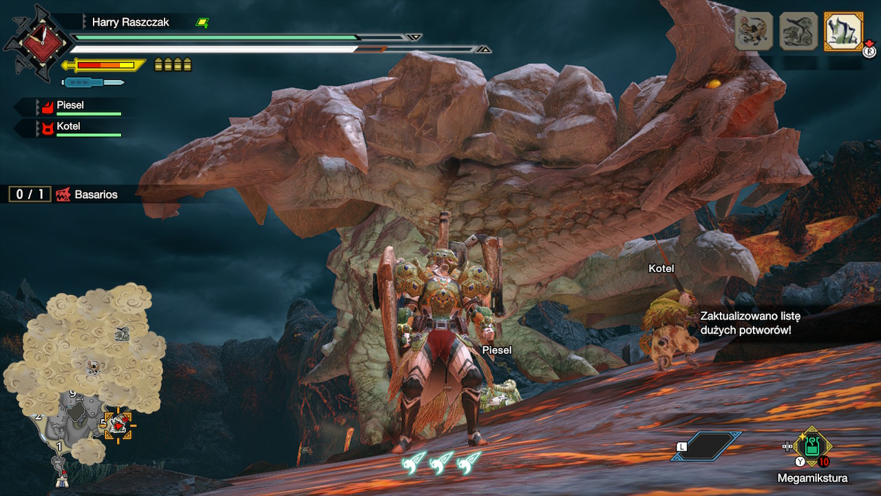 Nie odmówiłem sobie gry w Monster Hunter Rise również w trybie przenośnym. Myślałem, że brakować mi będzie dużego ekranu, a tekst może wydać się problematycznie mały. Nic z tych rzeczy, granie w tym trybie było bardzo przyjemne. Ostatnią rzeczą, na którą zwrócę w tym miejscu uwagę jest bardzo dobry czas ładowania poziomów. Jest to dużym zaskoczeniem, gdyż najnowszy Monster Hunter jest produkcją, która wygląda wyśmienicie. Radzi sobie przy tym z czasami ładowania lepiej od niejednej produkcji nie wyglądającej choć w połowie tak dobrze jak recenzowana tutaj gra.