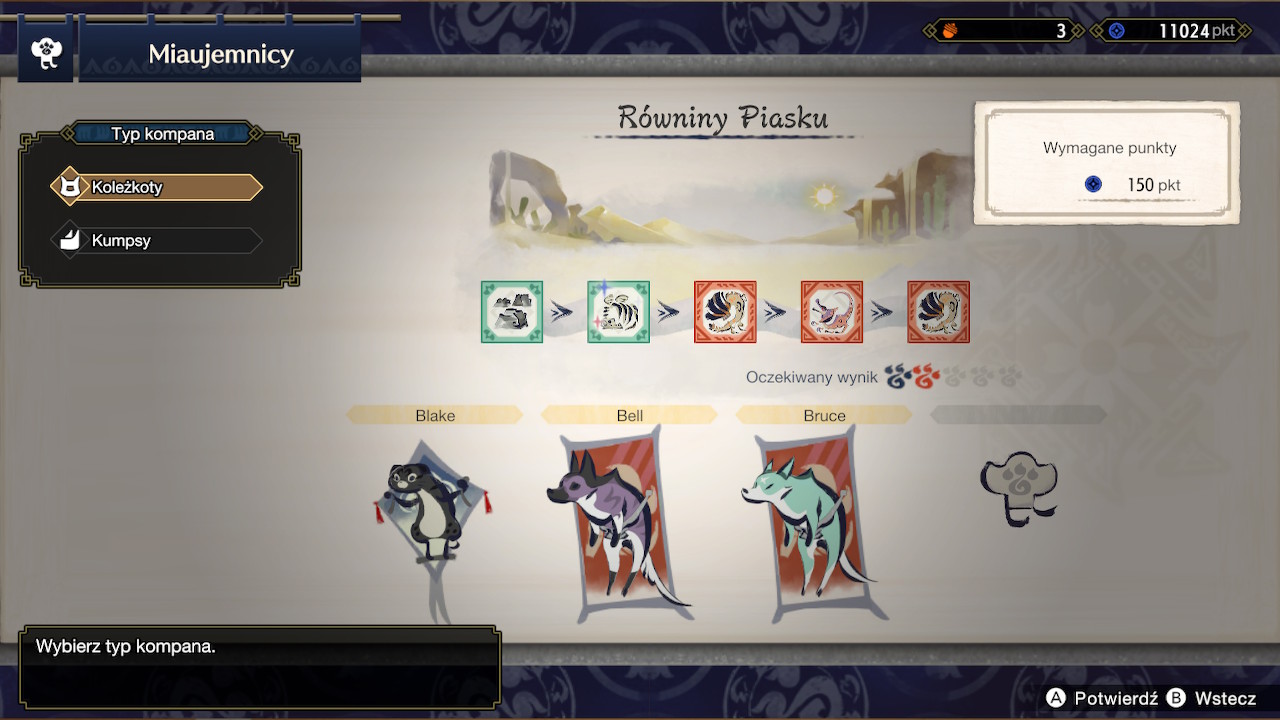 Jednym z przykładów dobrej lokalizacj mowy koleżkotów, ale również wspomnianych wcześniej ułatwień dla gracza są Miaujemnicy mistrza Kagarashi. Wcześniej zakupionych kompanów będziemy mogli wysłać na misje zwiadowcze. Przyniosą z nich samodzielnie zdobyte materiały, niekiedy nawet części stworów, które musielibyśmy inaczej upolować! Jeżeli czytacie między wierszami, widzicie tu mechanizm pasywnego dochodu, który ma obniżyć uciążliwy grind.