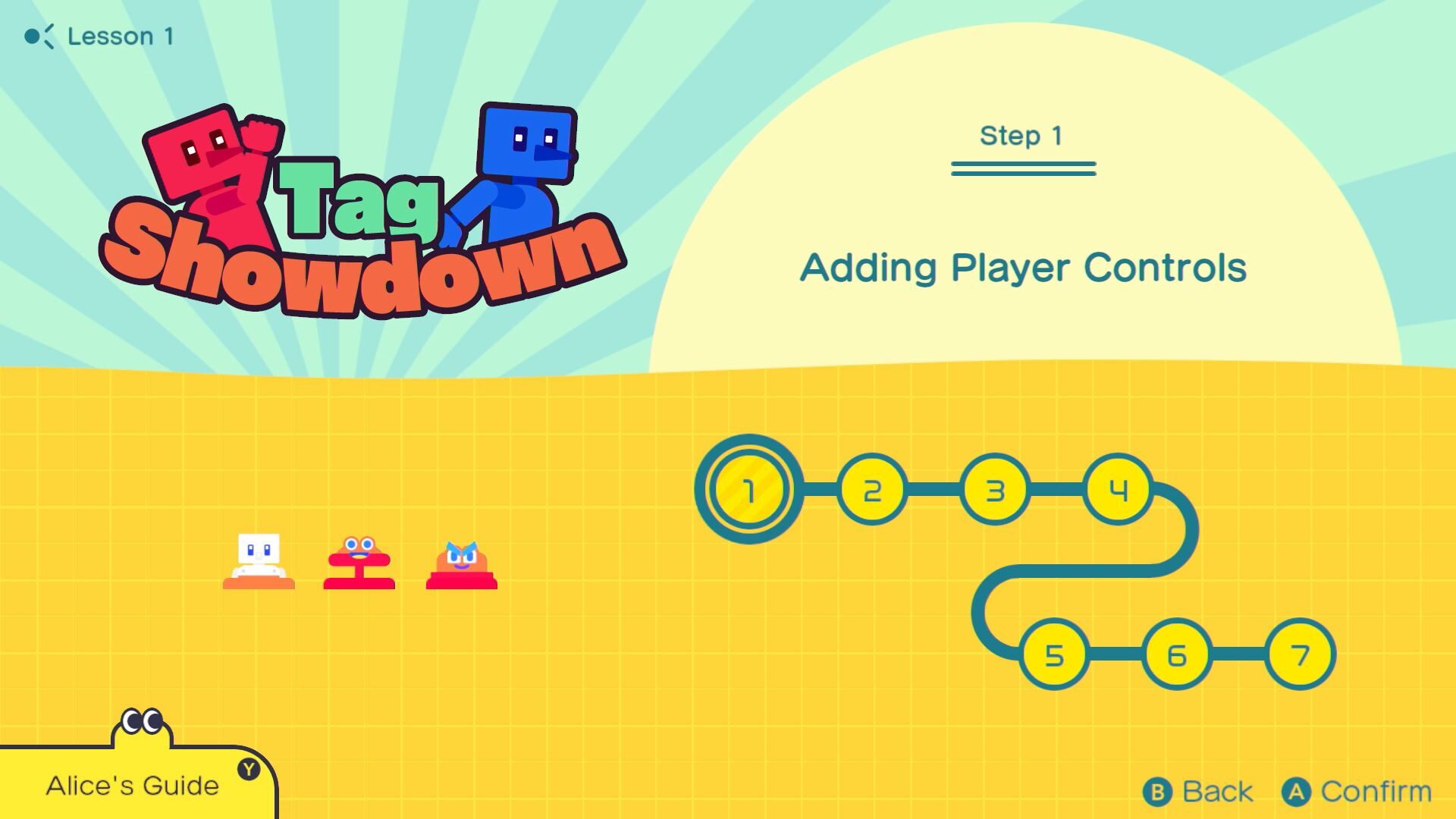 Kiedy po raz pierwszy uruchamiasz Game Builder Garage, możesz zacząć od trybu lekcji. Tutaj spotkasz kolorowe i dziwaczne Nodon, stworzenia, których użyjesz do nauki podstawowej koncepcji programowania wizualnego na interaktywnych zajęciach krok po kroku. Możesz uczyć się we własnym tempie. Te lekcje mają być zabawne, wciągające i idealne dla osób na wszystkich poziomach doświadczenia. Podczas nauki przewidziano punkty kontrolne, gdzie będziemy mogli sprawdzić swoją wiedzę, rozwiązując małe łamigłówki lub zadania.