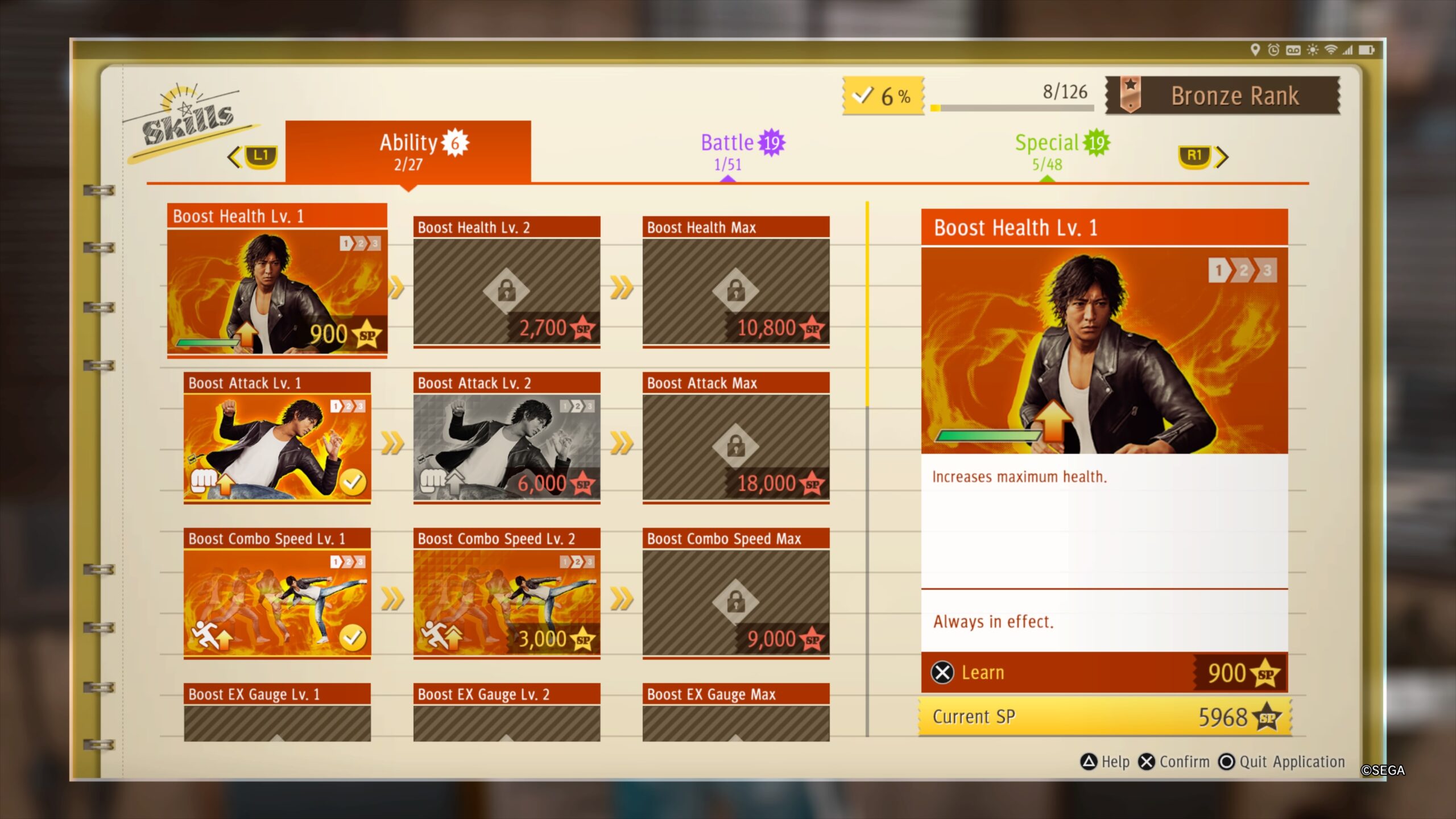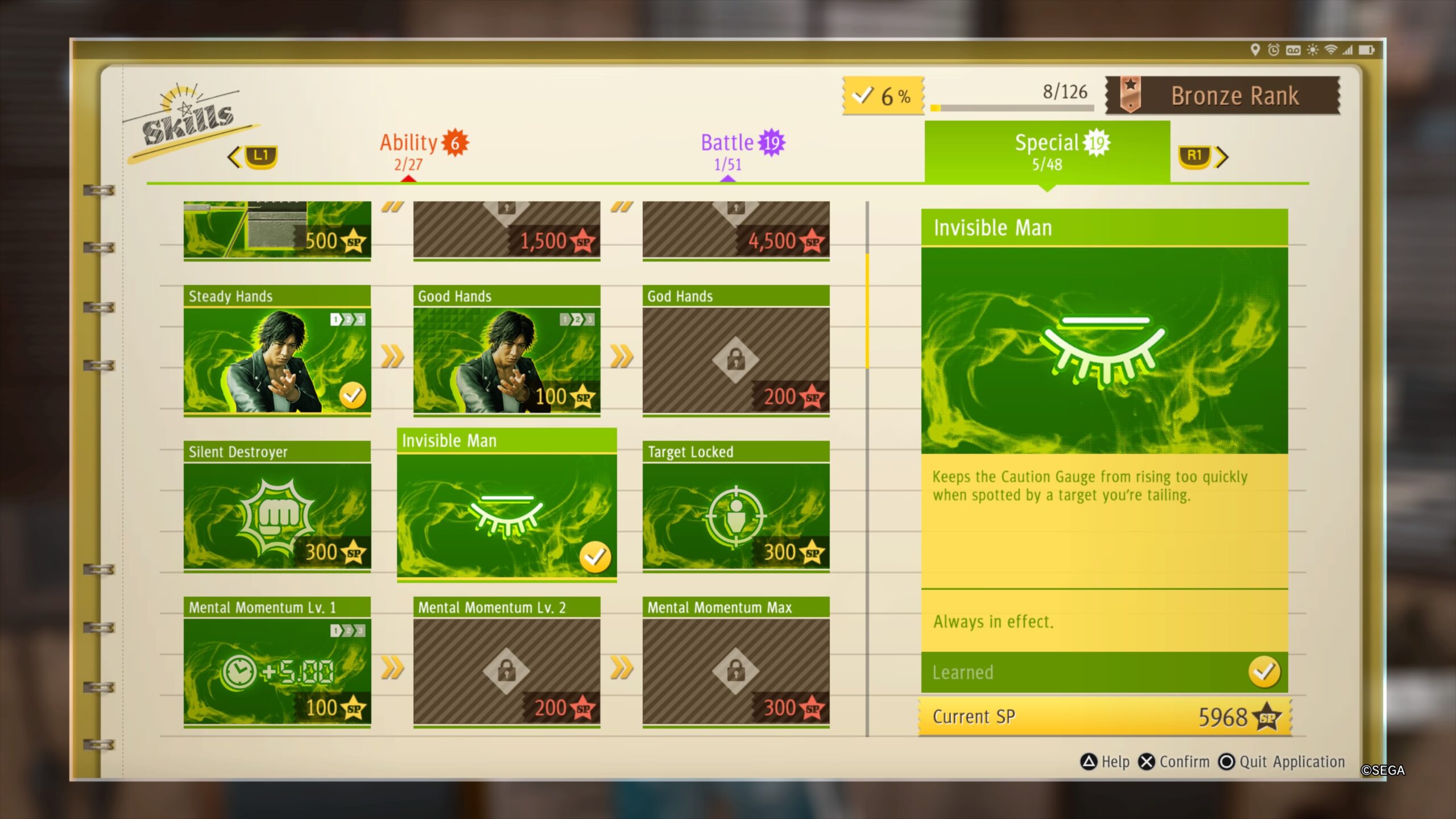 Bohater może korzystać z jednego z dwóch stylów walki. Jeden bardziej pasuje do walki z grupą przeciwników. Drugi styl będzie najefektywniejszy w walkach jeden na jeden. Podczas przygody zdobywamy doświadczenie, które będziemy mogli przeznaczyć na rozwój w trzech kategoriach. Stałe zmiany (jak podbicie zdrowia, szybkości kombosów), umiejętności walki (nowe ciosy), czy umiejętności specjalne (ułatwienia we włamywaniu się, flirtowaniu, lataniu dronem). Każdy obierze swoje własne priorytety w rozwoju Yagamiego. Napotykani co jakiś czas mniejszego kalibru rzezimieszkowie, to świetny materiał na przetestowanie zmian, które zakupiliśmy. Obawiałem się, że po pewnym czasie walki zaczną mnie nudzić, jednak tak jak wspomniałem, do końca wydawały się satysfakcjonujące. Jeżeli jednak nie mamy ochoty na danie lekcji niewiele znaczącemu przeciwnikowi, możemy po prostu biec do kolejnego punktu ważnego dla fabuły i go zignorować.