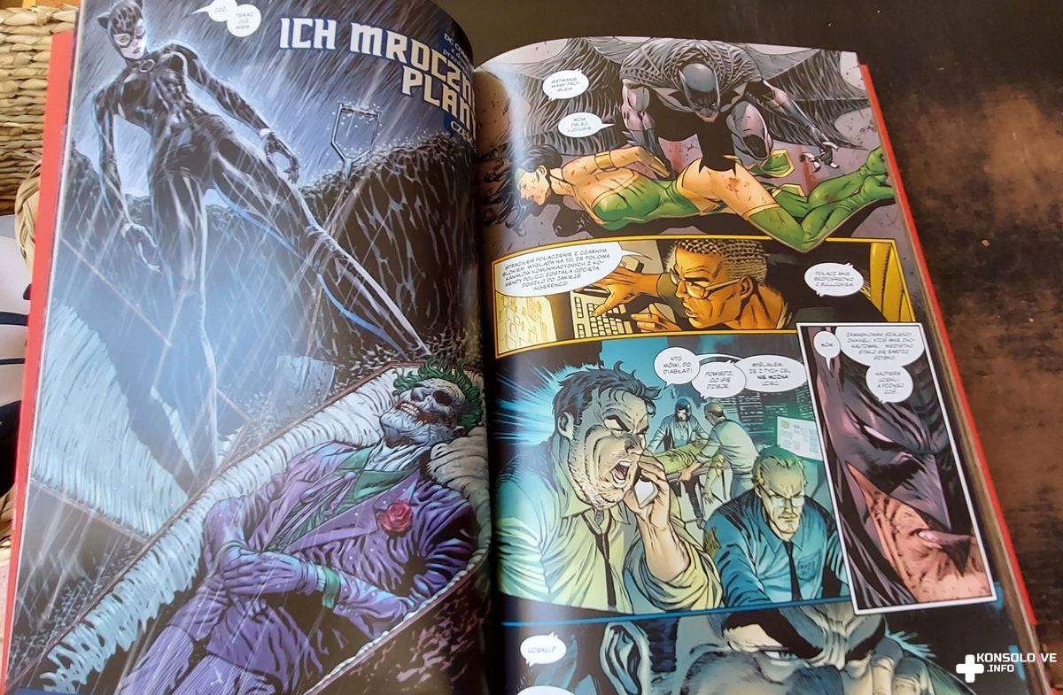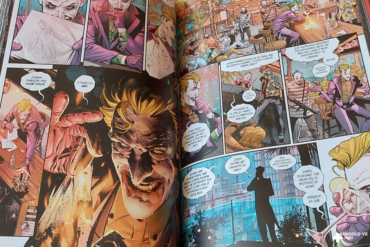 Sporym plusem Ich mrocznych planów jest bogactwo bohaterów, których spotkamy na kartkach komiksu. Mamy więc Deathstroke’a, Harley Quinn, Catwoman, Pingwina czy Riddlera. Na nich bynajmniej nie kończy się plejada występujących postaci, aczkolwiek nie zamierzam Wam wyjawiać wszystkich nazwisk. Zamiast tego jedynie wspomnę, że ich pojawianie się jest sensowne. Mimo ogromnej liczby znanych postaci nie odniosłem wrażenia, aby którakolwiek z nich była dodana na siłę. Idealnie pasują one do przedstawianych wydarzeń i nieobecność jakiegoś bohatera sprawiłaby, że fabuła wydawałaby się dziurawa. To ogromna zaleta i przyznaję, że nie mogę się doczekać kolejnego tomu, noszącego nazwę Wojna Jokera. Przedtem jednak na portalu przeczytacie moją recenzję Trzech Jokerów. Pamiętajcie więc, aby co jakiś czas nas odwiedzać.