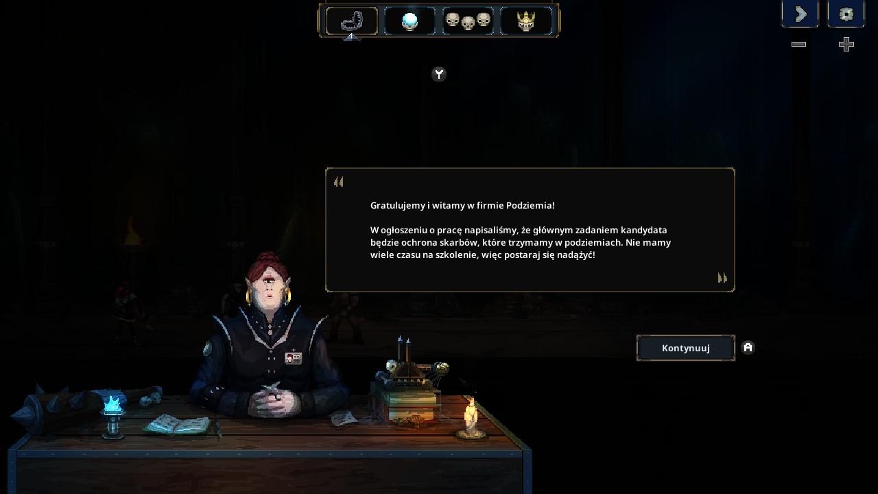 Rozpoczynamy zabawę z przeuroczą sekretarką, która wprowadza nas w całą historię i przygotowuje na to, co będzie nas czekało w Podziemiach.