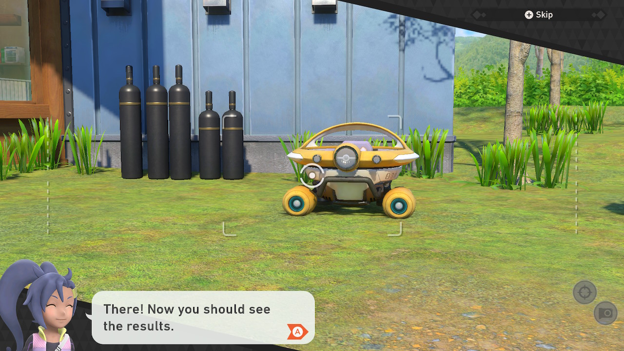 W tym miejscu opiszę sterowanie i poszczególne “gadżety”, które będziemy mieli do dyspozycji – zaczynając od aparatu. Oprócz samego pstrykania zdjęć, posiada on również zoom oraz funkcję skanowania otoczenia. Dzięki temu znajdziemy niektóre Pokemony albo interesujące punkty czy rośliny. Szybko nauczymy się rzucać Pokemonom owocową przekąskę, a w późniejszym okresie dowiemy się jak przyspieszać nasz pojazd. Wszystko to jest dobrze opisane, a następnie przećwiczone podczas krótkiego instruktażu.