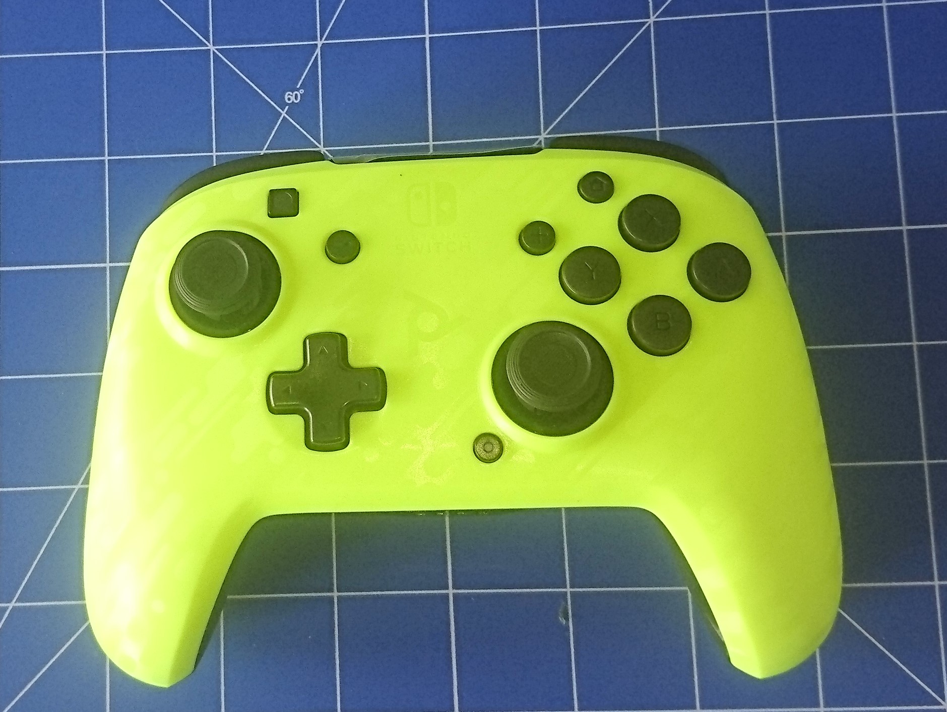W kontrolerze od PDP nie pozwolono sobie na takie luksusy i zastosowano w pełni plastikową obudowę. Co ważne, powierzchnia nie jest jednolita. Góra pokryta jest rowkami układającymi się w „camo”, a dół na powierzchniach, które trzymamy wyżłobiony jest w drobną kratkę. Sprawia to, że ręka nie ślizga się po kontrolerze. Obudowa może zostać ściągnięta (w recenzenckim egzemplarzu jest w kolorze żółtym). Ściągniemy ją między innymi w celu zamiany gałek. Kolejnym powodem do ściągnięcia obudowy może być jej zamiana, gdy posiadamy już inny kontroler z serii Faceoff bądź obudowę inspirowaną którąś z gier znanych z Nintendo Switch.
