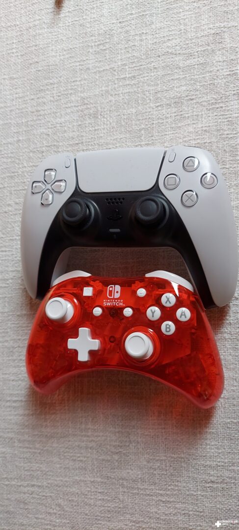 PDP Wired Controller jest dość małym kontrolerem. Niżej możecie zobaczyć jak wygląda on w zestawieniu z konsolą Nintendo Switch, padem od PowerA (którego test możecie przeczytać tutaj) oraz kontrolerami DualSense i od konsoli Xbox One. Osoby o większych dłoniach mogą potrzebować nieco czasu, aby przywyknąć do rozmiaru testowanego pada. Sam miałem z tym dość spory problem, zwłaszcza, że rozmiar DualSense’a jest dla mnie idealny. Mało tego, nawet moja żona – która ma oczywiście mniejsze dłonie niż ja – musiała przywyknąć do tak drobnego pada. Co nie powinno dziwić, w parze z rozmiarem i przewodowością urządzenia idzie jego niewielka waga. Wynosi ona zaledwie 198 gramów. Pierwsze wrażenie po chwyceniu pada w ręce jest zaskakujące. Nie bez znaczenia jest wykorzystanie plastikowych elementów. W związku z tym można się obawiać o wytrzymałość kontrolera. Pamiętajmy jednak o tym, że jego cena wynosi niespełna 80 złotych. W dodatku jest oficjalnie licencjonowany przez Nintendo, co sprawia, że produkt ten może się jawić jako bardzo kuszący.