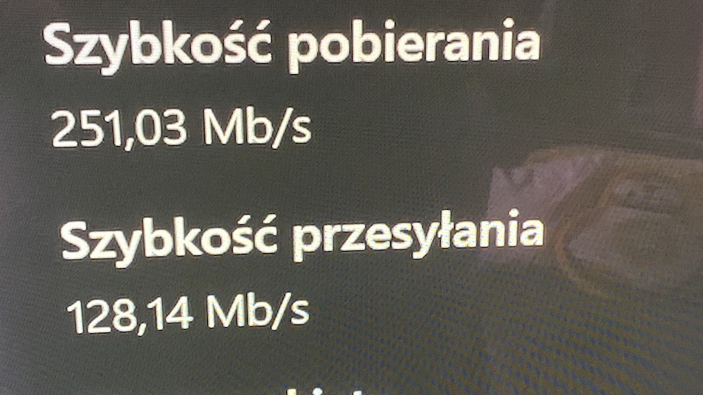 W wi-fi 6 wyposażona jest konsola PlayStation 5. Bardzo byłem ciekaw jak sobie poradzi w starciu z routerem Mercusys, niestety w trakcie moich testów konsolę musiałem wysłać do serwisu Sony. Nie zdążyłem więc wykonać pomiarów. Zrobiłem to natomiast na konsoli Xbox Series X, które w moduł wi-fi 6 wyposażona nie jest. Potem podłączyłem konsolę kablem. Konsola oddalona jest od routera o około 5 metrów, ale dzielą ją 2 ściany.