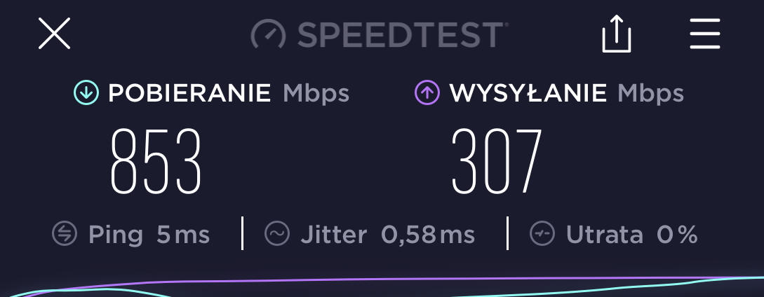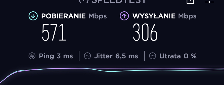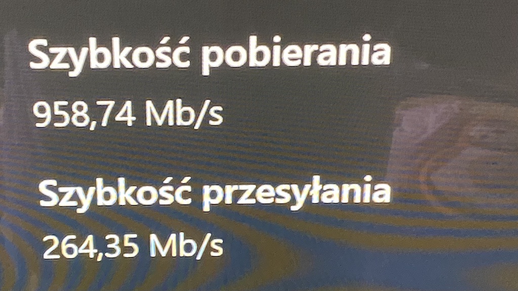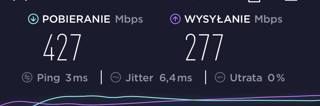 Na sam koniec chciałem porównać urządzenie do routera, który otrzymałem od dostawcy internetu. Mój konkretny dostawca udostępnił mi swoje urządzenie, które także wspiera standard wi-fi 6. Korzystam z niego na codzień i jestem dość zadowolony. A jak widać z poniższego wyniku sprawuje się on równie dobrze co testowany Mercusys.