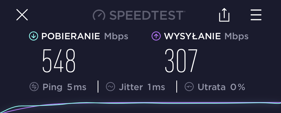 Z czystej ciekawości wyszedłem z telefonem z mieszkania i zszedłem do parteru. Przy wejściu do bloku wyniki nie powalały, ale to nic dziwnego biorąc pod uwagę ile betonu było po drodze. Test też wykonałem na MacBooku Pro.