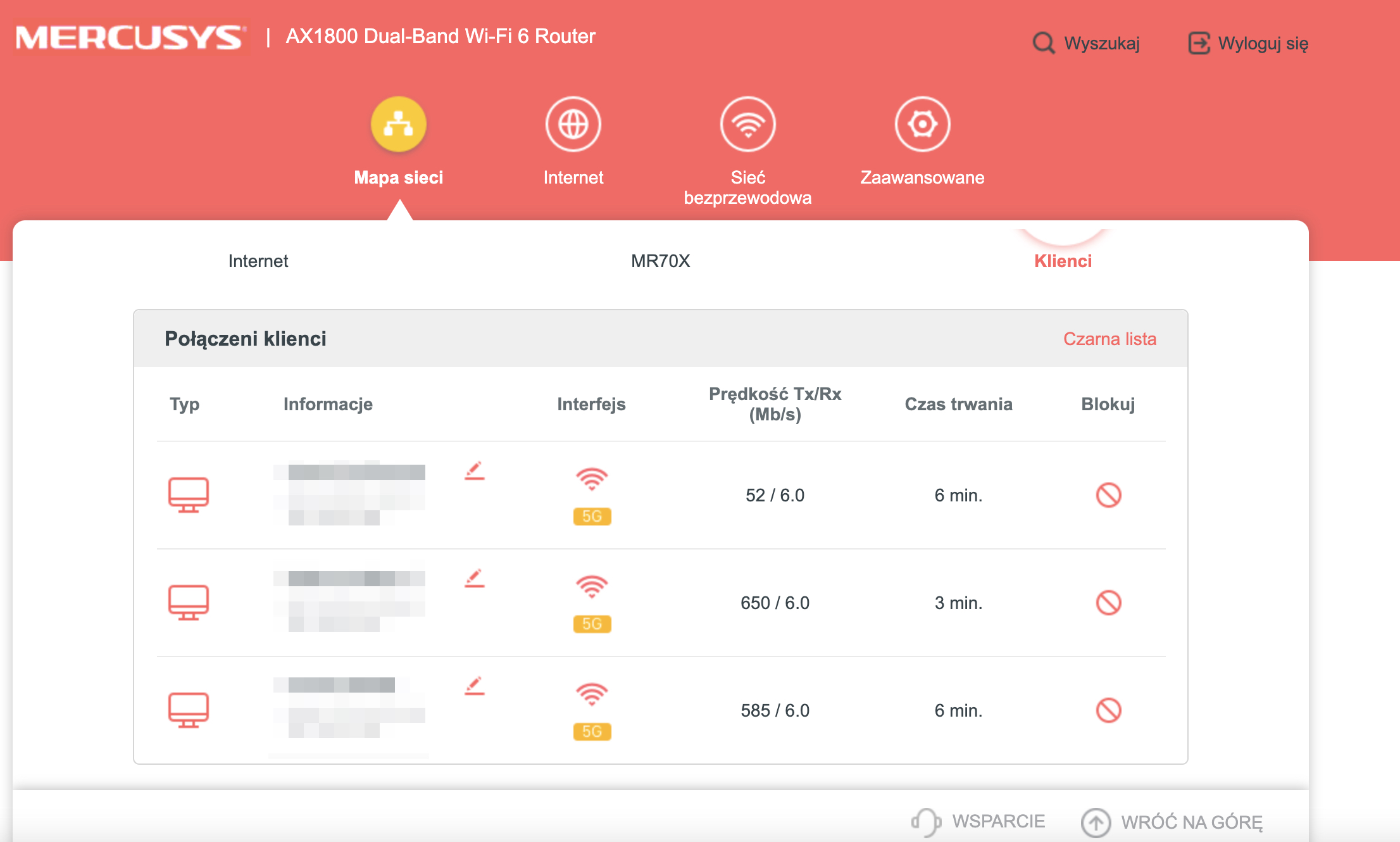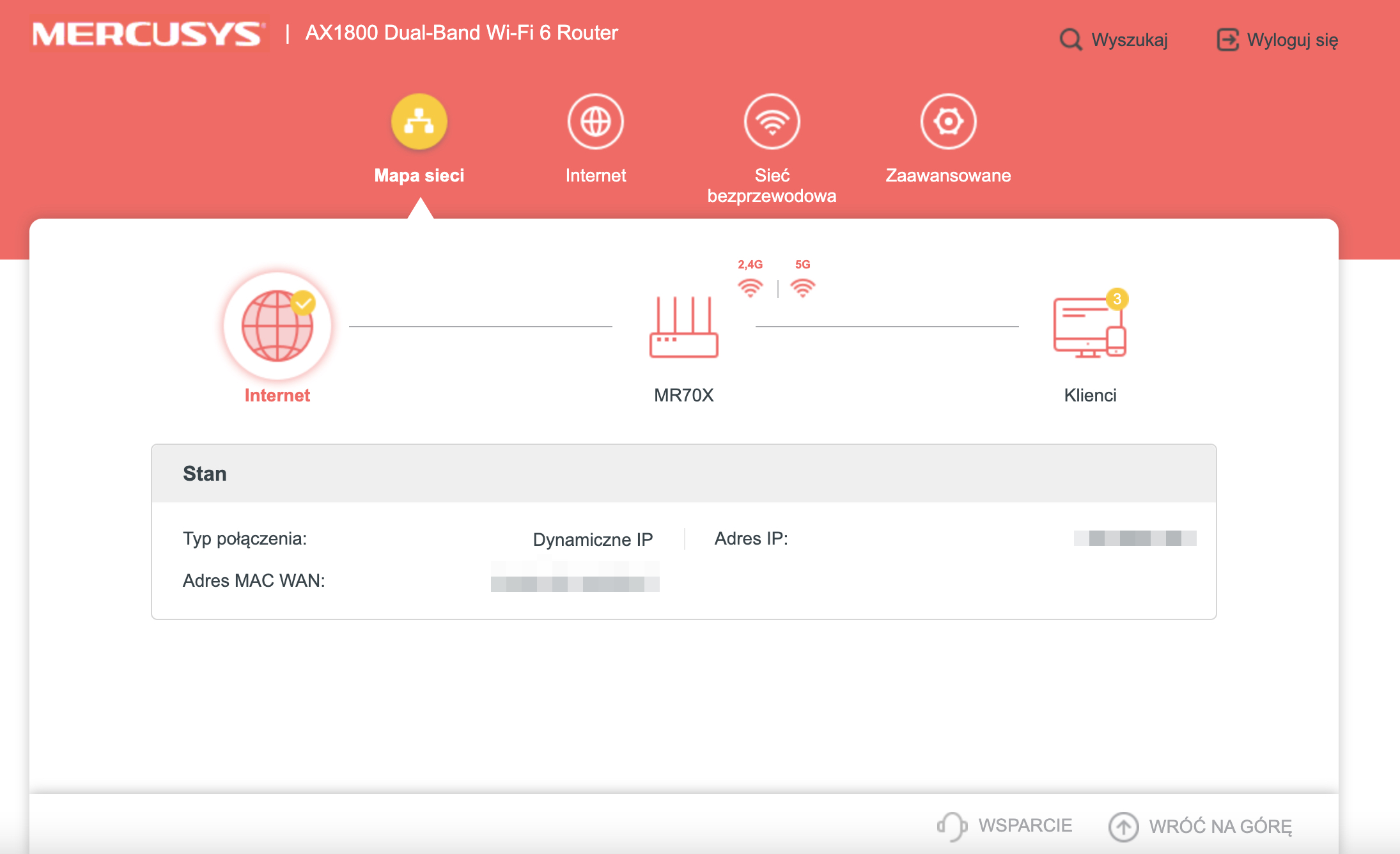Interfejs urządzenia jest żywcem wyjęty z urządzeń TP-Link, jedyne różnice to oczywiście kolorystyka, która w tym przypadku jest czerwona. Jeśli więc kiedykolwiek ustawialiście dowolny router firmy TP-Link to konfiguracja Mercusysa przyjdzie wam wyjątkowo łatwo. Nawet nowicjusze powinno sobie z tym poradzić.