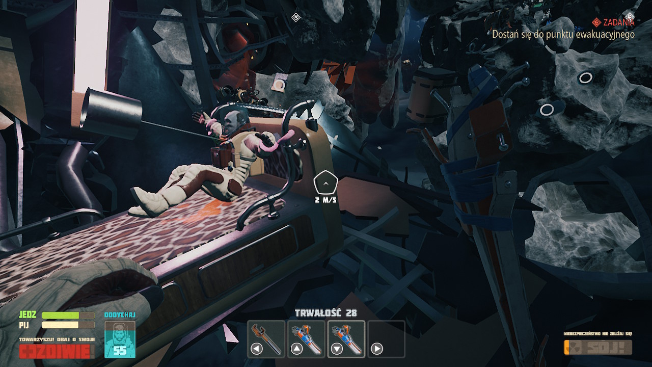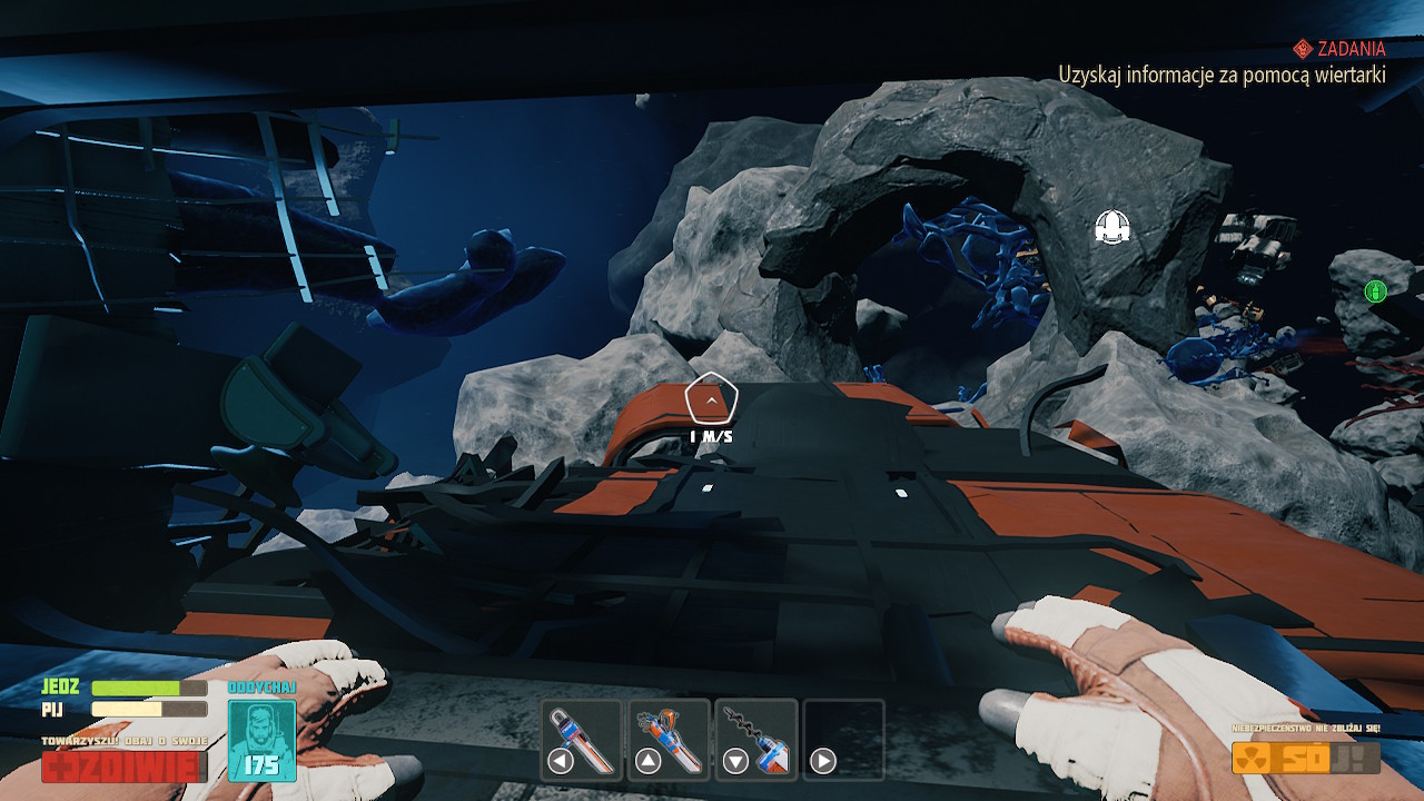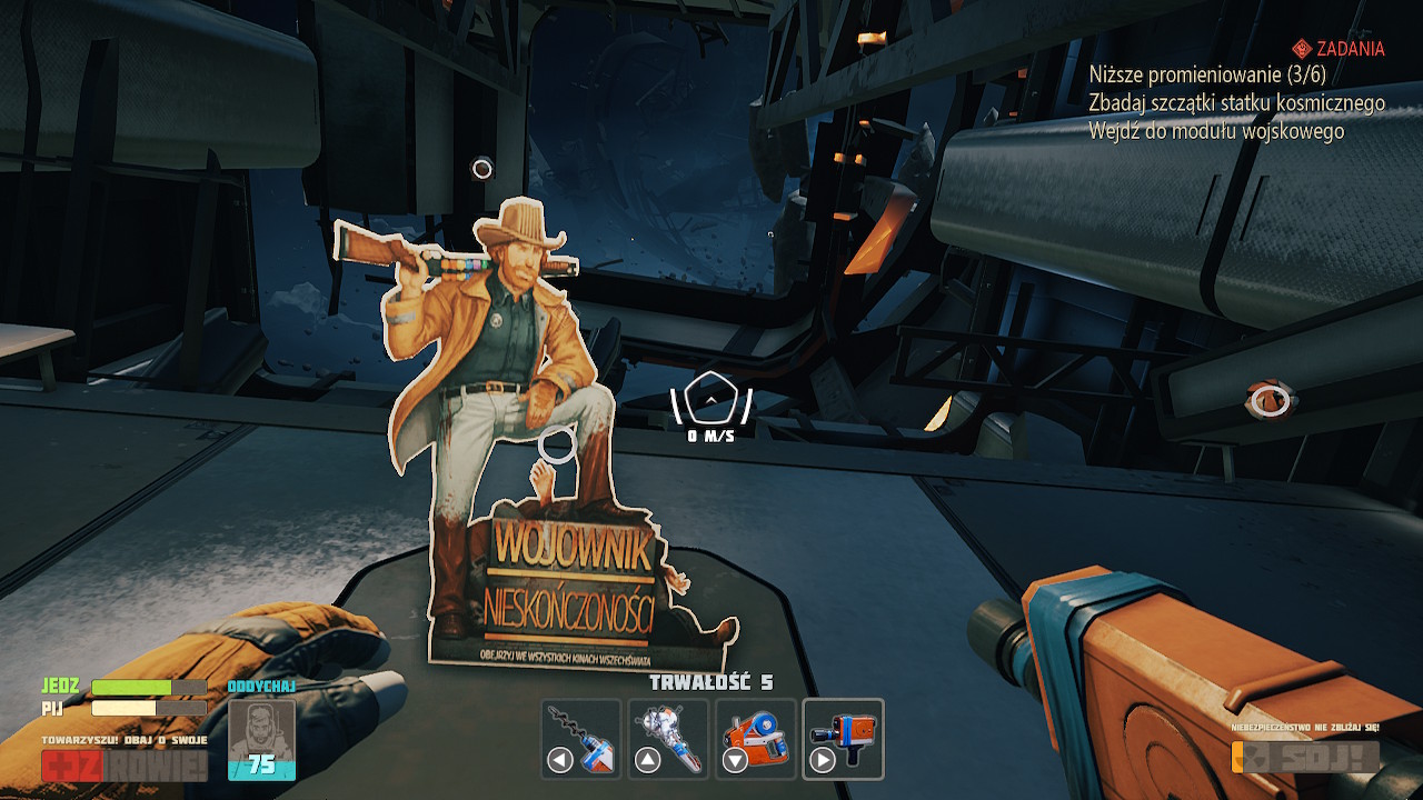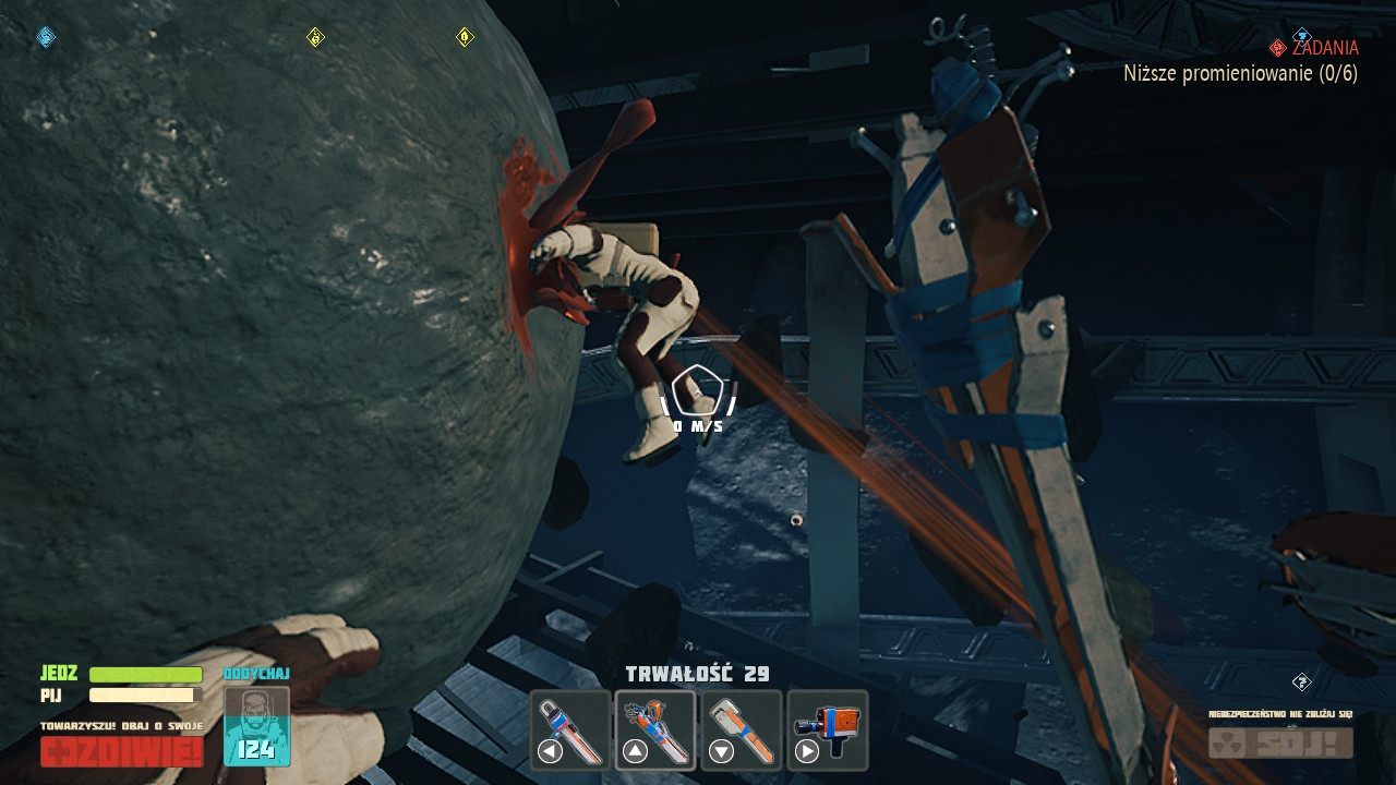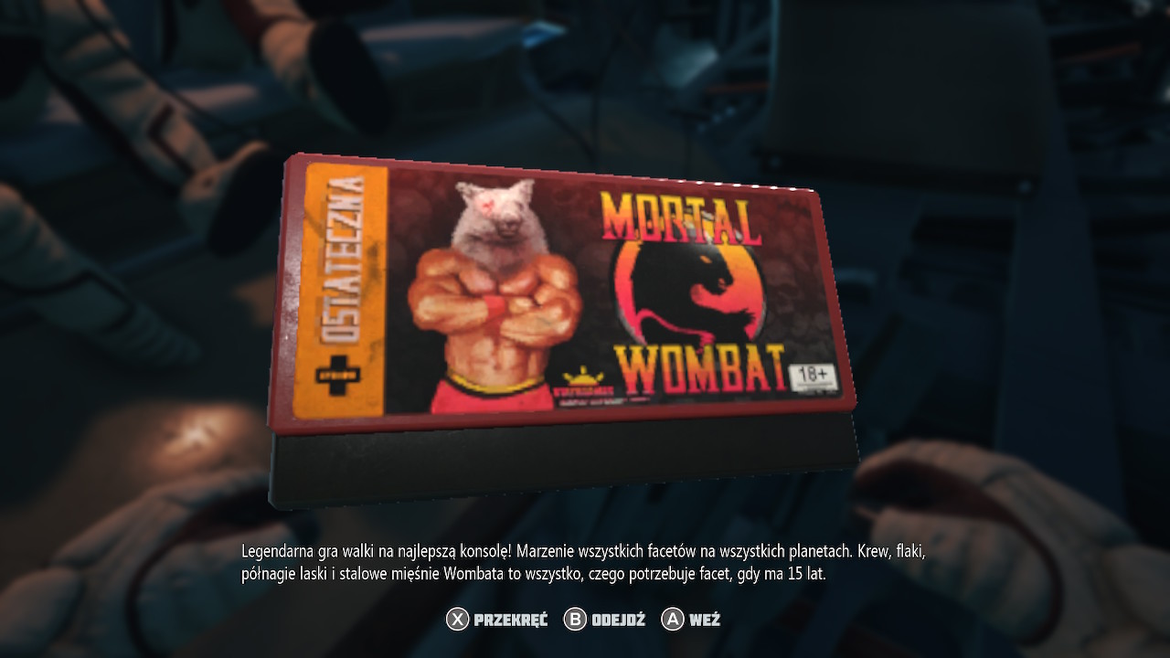 Nie włączałem też gry tylko z redakcyjnego obowiązku. Gra urzeka swoim humorem, podczas gry towarzyszą nam głównie komunikaty skafandra, które przeważnie są po prostu dowcipne. Oczywiście, przy takim natężeniu komunikacji nie wszystkie żarty dobrze lądują, ale przeważnie nie jest wcale źle. Tym bardziej, że w grze znajdziemy ponadto wiele różnych “znajdziek” nawiązujących do popkultury, głównie klasycznego science-fiction, czy chociażby kultowych gier jak Mass Effect. Szkoda, że komunikaty skafandra są czasem wypluwane za szybko, wiem że miał być beznamiętnym komentatorem wydarzeń, ale tempo jego wypowiedzi i tak nie jest równe.