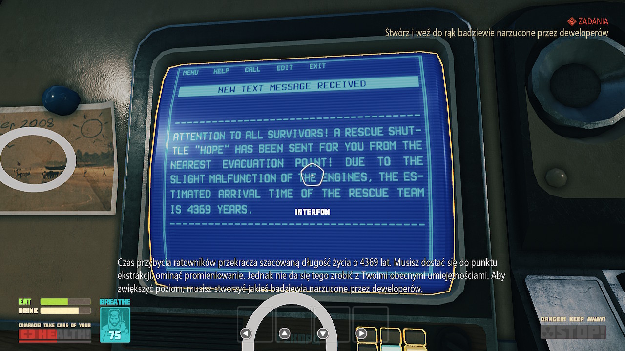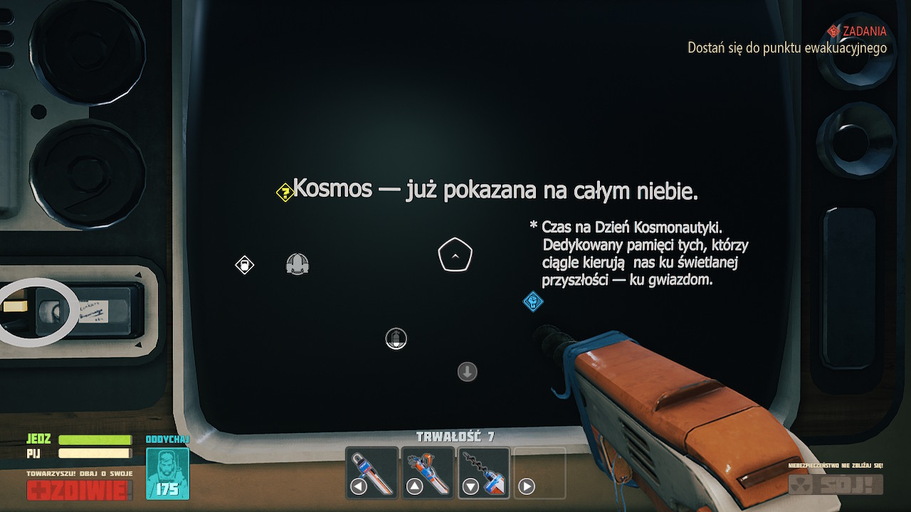 Na szczęście dla Breathedge – tak. Wspomniałem, że czekała w celi śmierci na swoją negatywną recenzję. Po aktualizacji jednak, przez 10 kolejnych godzin gry, ani razu się sama nie wyłączyła. Co więcej, poprawiono wiele tłumaczeń. Co prawda, część z błędów językowych może być zamierzonym efektem, stąd mogą się nieźle kamuflować. Świat gry mocno nawiązuje do klimatów bloku wschodniego XX wieku. Wszelka prowizorka i błędy są więc na porządku dziennym.