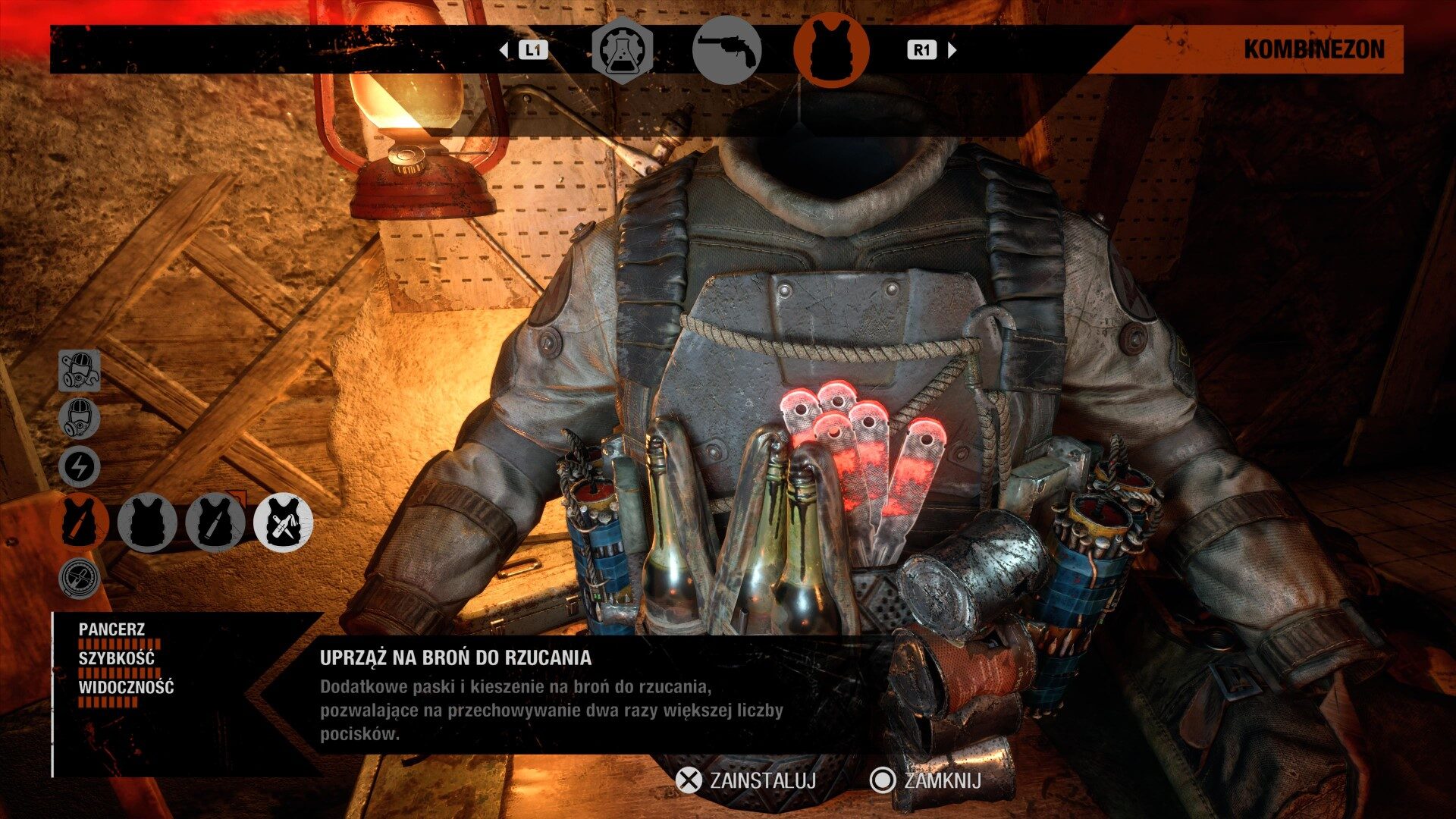 Studio 4A Games nie zapomniało o obsłudze funkcji dotykowych kontrolera DualSense na PlayStation 5. Jeszcze zanim zaczniemy strzelać z dowolnej broni, to ściskając specjalnie stworze dynamo naładujemy naszą latarkę – im bliżej naładowania, tym opór R2 jest większy. Podobnie ma to miejsce w karabinie na kulki – Tikhar. Aby móc z niego strzelać, musimy go naładować, siłując się z prawym spustem kontrolera.