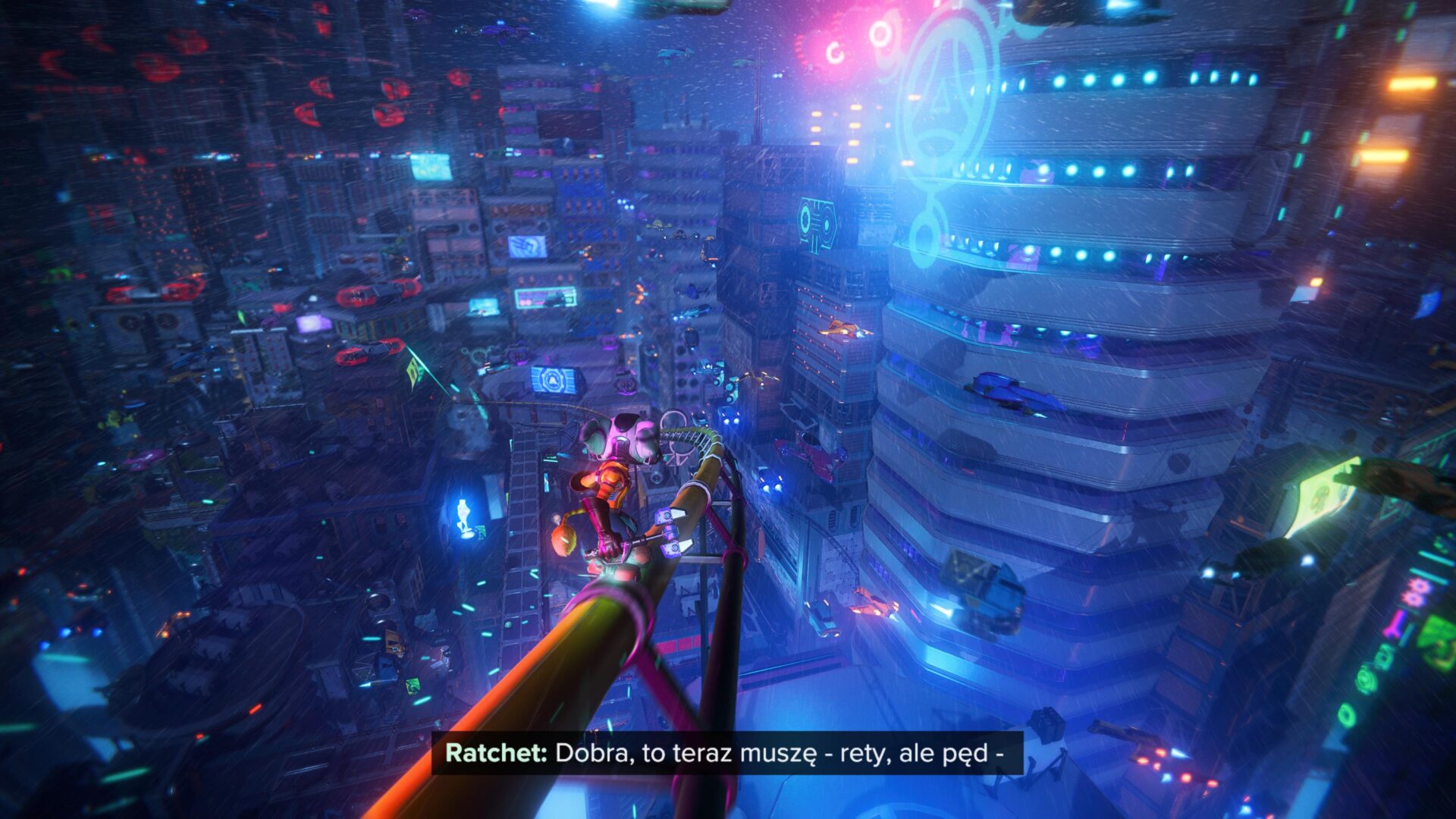 Tym bardziej, że gra oferuje pełną polską wersję językową. Ta jest wykonana ok, ale generalnie dubbing do tego typu produkcji się nam zazwyczaj udaje. Szkoda trochę, że przez lata zmieniali się aktorzy głosowi użyczający głosu Ratchetowi i Clankowi. Przez to polski fan mógł już słyszeć kilka wersji tych postaci. Angielskojęzyczni gracze mają pod tym względem spójność sięgającą 2002 roku.