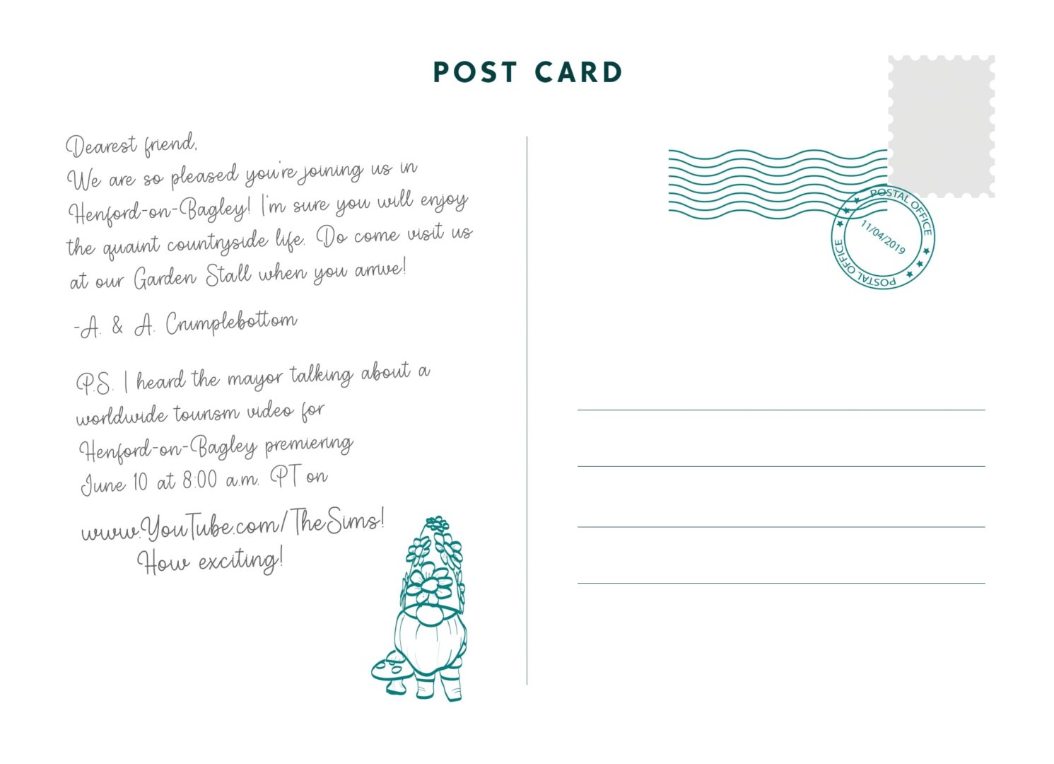 Prezentacja nowego dodatku odbędzie się już jutro o 17 na simsowym kanale YouTube. Poza zaprezentowaną pocztówką, na Twitterze pojawiły się krótkie wierszyki. Trochę brzmią, jakbyśmy mieli spodziewać się wróżek i być może wątków rolniczych. Już jakiś czas temu słyszeliśmy pogłoski o koniach i farmach — to mogłoby być to.