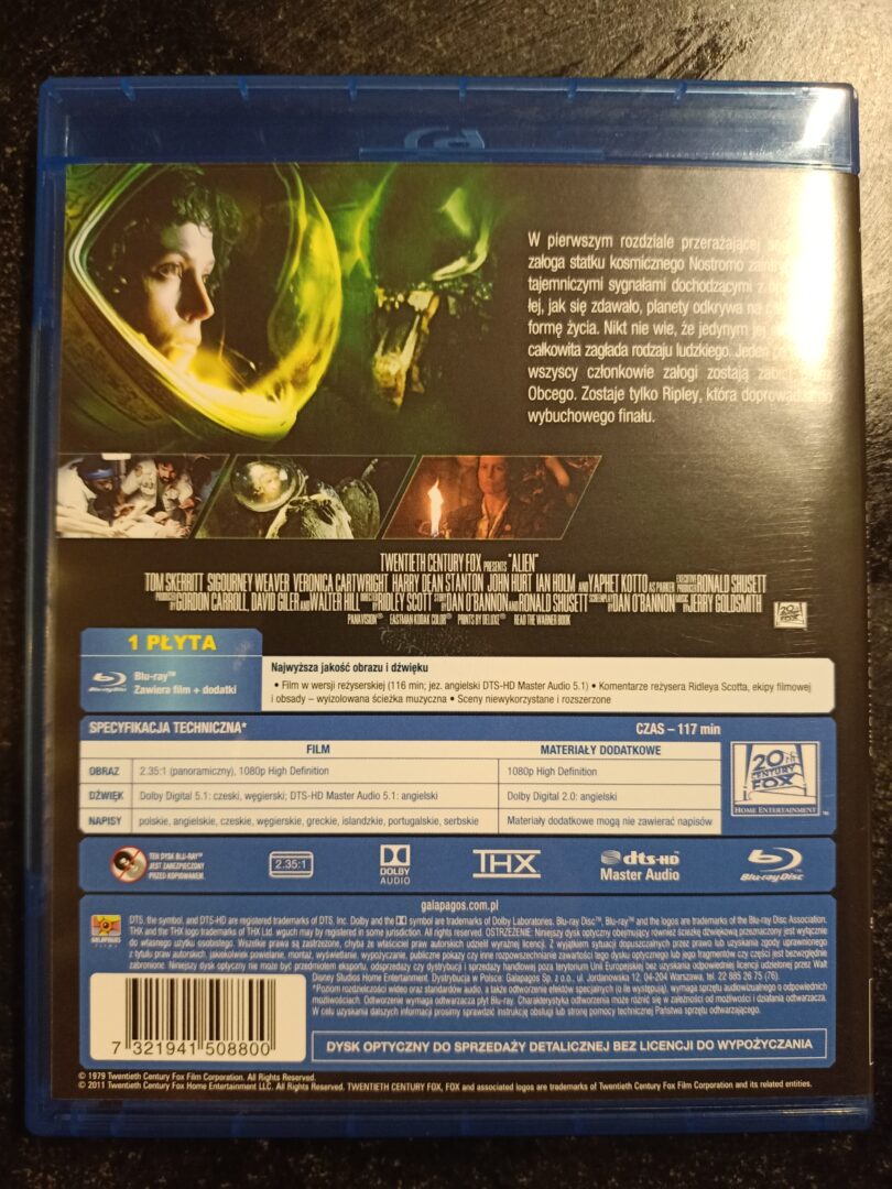 Postaram się jednak na tytuł spojrzeć w miarę obiektywnie. Ocenię szczegółowo wydanie Blu-Ray, które niedawno dostałem w swoje ręce dzięki polskiemu dystrybutorowi, firmie Galapagos. Trafił on do mnie w nie lada towarzystwie. Pojawił się wraz z najświeższym filmem z serii o Obcy: Przymierze (którego recenzję poczytacie TUTAJ), oraz z Predatorem, którego recenzji możecie spodziewać się w najbliższym czasie. No dobrze, z czym przyjdzie nam się zmierzyć w przypadku wydania Obcy: Ósmy Pasażer Nostromo na Blu-ray?