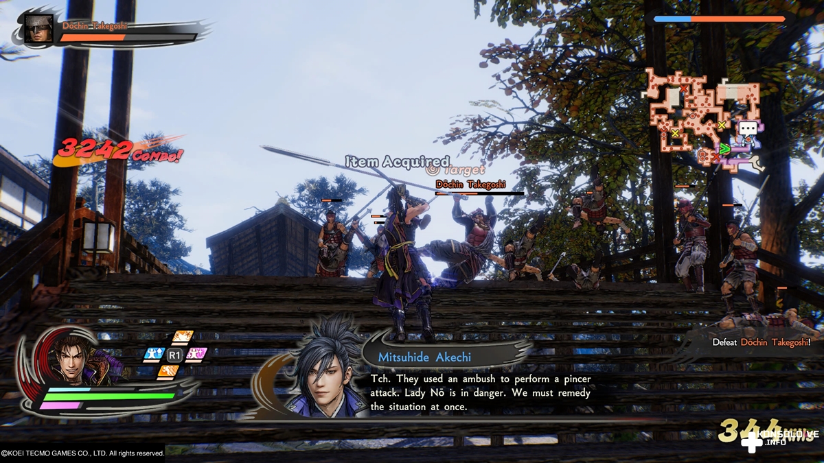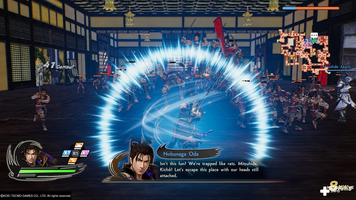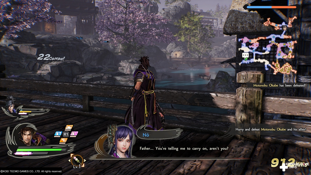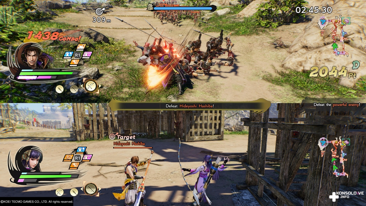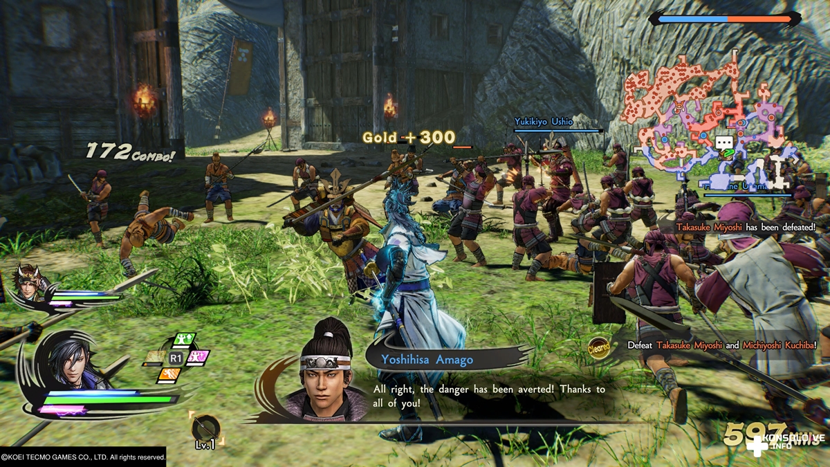 Główną siłą Samurai Warriors 5 jest w moim przekonaniu właśnie rozgrywka. Bynajmniej nie jest ona realistyczna, aczkolwiek nie można tego postrzegać za wadę produkcji. Trzeba od samego początku wiedzieć, na co należy się nastawić. Na początku tej recenzji wspomniałem, że w serii Samurai Warriors normą są starcia z wieloma przeciwnikami. Wskaźnik kombinacji (generowany oczywiście przez trafione uderzenia) błyskawicznie idzie w setki, a nawet tysiące. Na polach bitwy znajdziemy tysiące oponentów, których możemy pokonać, zwiększając tym samym ostateczną ocenę na koniec poziomu. Jednak to nie walka z szeregowymi żołnierzami przeciwnej armii jest celem każdej misji. Bitwy, które stoczymy mają różnorodne warunki odniesienia porażki bądź zwycięstwa. Możemy więc przegrać jeśli zginie któraś z naszych postaci, a wygrać na przykład pokonując po prostu jednego konkretnego przeciwnika. Brzmi to może nieco taktycznie, ale prawda jest zgoła inna – musimy przeć przed siebie, atakując wszystko, co się rusza i jest oznaczone innym kolorem niż nasza armia. Nierzadko na ekranie zobaczymy nawet kilkuset oponentów. Nigdy jednak płynność rozgrywki nie spada poniżej 60 klatek na sekundę. To ogromna zaleta recenzowanej gry. Muszę jednocześnie zaznaczyć, że nie wiem, czy tak samo jest na PS4. Ogrywałem wersję dedykowaną tej właśnie konsoli, ale dzięki wstecznej kompatybilności na PlayStation 5.