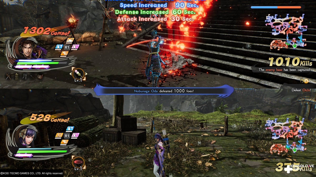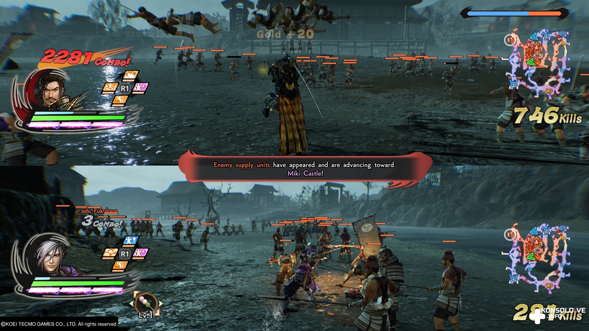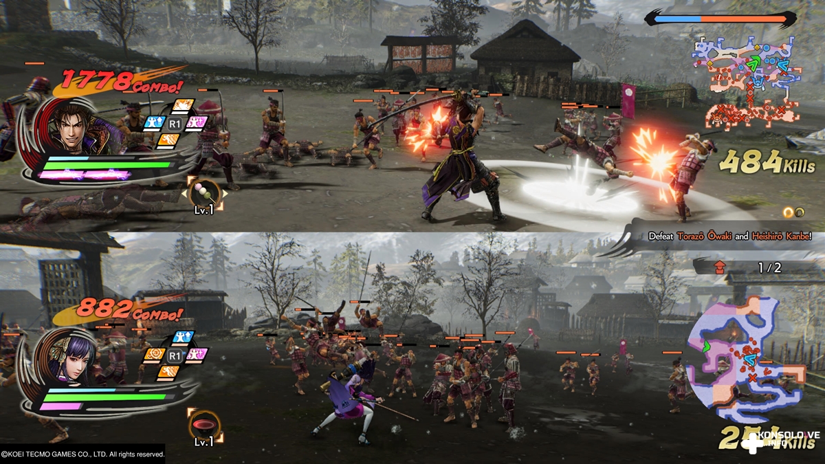 Twórcy umożliwiają granie w dwóch trybach – Musou oraz Citadel. Pierwszy z nich to zwykła kampania fabularna – którą możemy rozegrać, stając po dwóch stronach konfliktu – i jako taka nie stanowi źródła dla wielu zasobów. Jeśli zależy nam na surowcach, zdecydowanie wskazana jest granie w Citadel. Zasoby możemy wykorzystywać do rozwijania naszych budowli (o czym więcej w dalszej części niniejszej recenzji), natomiast zdobywane punkty doświadczenia do wykupowania nowych umiejętności naszym postaciom oraz zwiększania ich poziomów i stopni opanowania broni. Na pewno wiele osób doceni możliwość grania w Samurai Warriors 5 we dwoje lokalnie, na podzielonym ekranie. Po przejściu początkowych poziomów samotnie – nie było innej opcji – jako Nobunaga Oda bardzo się ucieszyłem, widząc opcję dołączenia drugiego gracza. Przeszedłem tak z żoną kilka poziomów, po czym… napotkałem na zadanie dla jednej osoby. Okej, pomyślałem więc, że przeniesiemy się do Citadel. Zagraliśmy tam również kilka etapów, po czym… musiałem wrócić do Musou, aby odblokować nowe poziomy w Citadel. Sprawia to, że nie da się przejść wszystkich misji we dwoje, po prostu zasiadając przed konsolą i grając wspólnie. Co jakiś czas spotkamy się z sytuacją, w której jedna osoba będzie się nudziła, czekając aż drugi gracz ukończy poziom dla jednej osoby. To spore niedopatrzenie i ogromna wada produkcji. Warto mieć to na uwadze, rozważając zakupienia Samurai Warriors 5 wyłącznie do rozgrywki w trybie współpracy.
