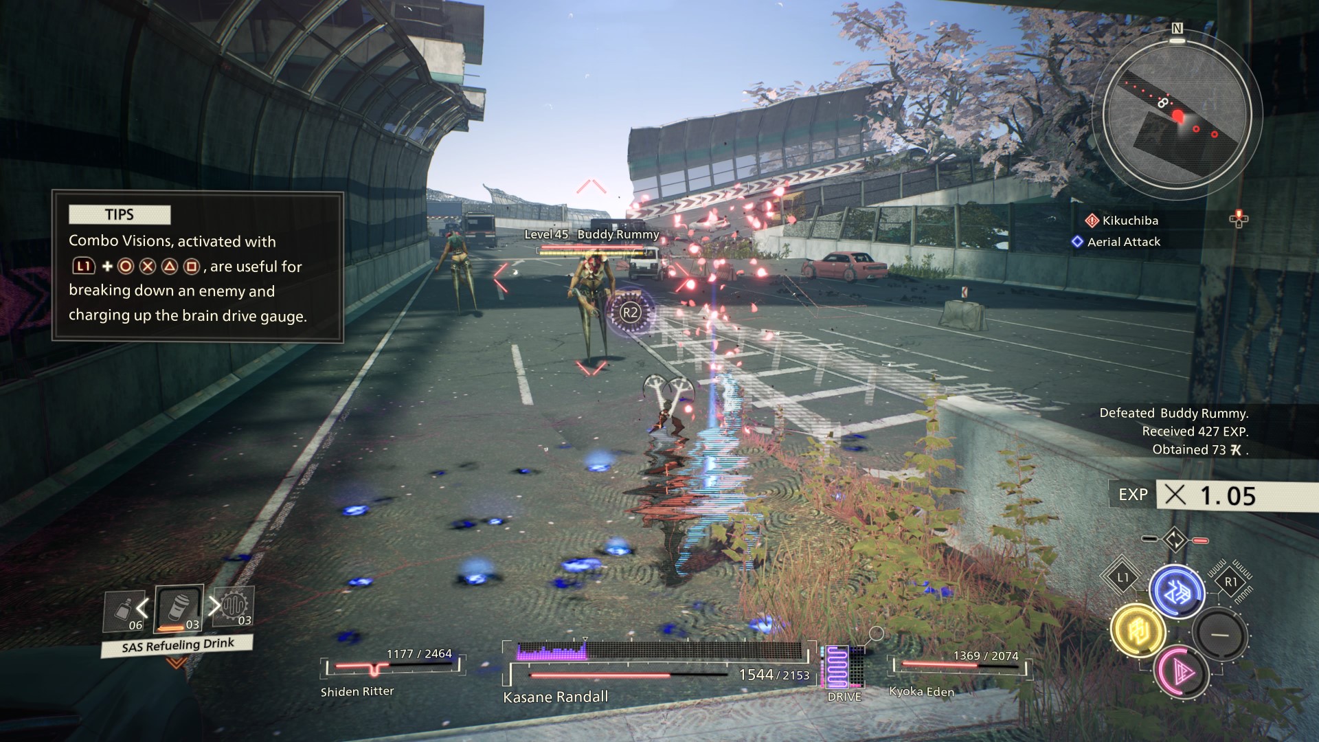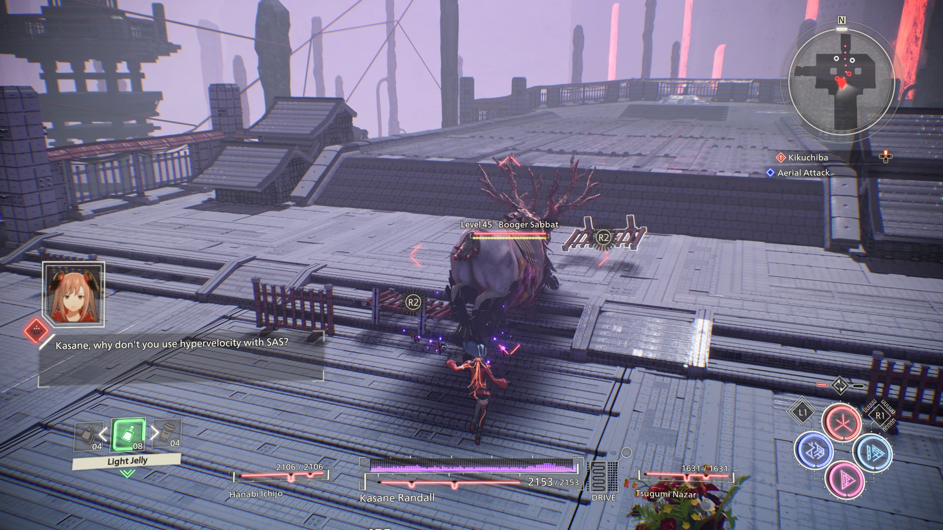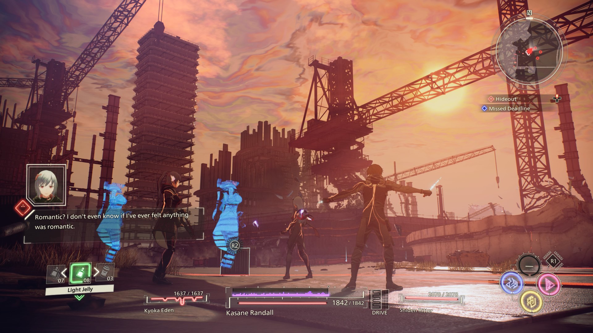 Kasane wprawdzie niby bije się nożami na krótkim dystansie, a Yuito tłucze przeciwników mieczem w zwarciu, ale w praktyce wygląda to podobnie, szczególnie że oboje bohaterów korzysta przy tym z tej samej mocy – psychokinezy – by ciskać w stworki przeróżnymi przedmiotami, od samochodów po automaty z kolą. Odrobinę poważniejsze różnice zaczynają się przy członkach naszego plutonu, którzy przez większość gry u obojga bohaterów są inni i mają inne zdolności, ale to nadal raczej marginalna kwestia. Mądre głowy w internetach twierdzą wprawdzie, że lepiej najpierw poznać historię Yuito, bo jest mniej zagmatwana, a kombosy wchodzą łatwiej, ale sam zrobiłem na odwrót i wcale nie czuję, że cokolwiek straciłem, więc sugeruję po prostu wybrać postać, która bardziej do was przemawia.