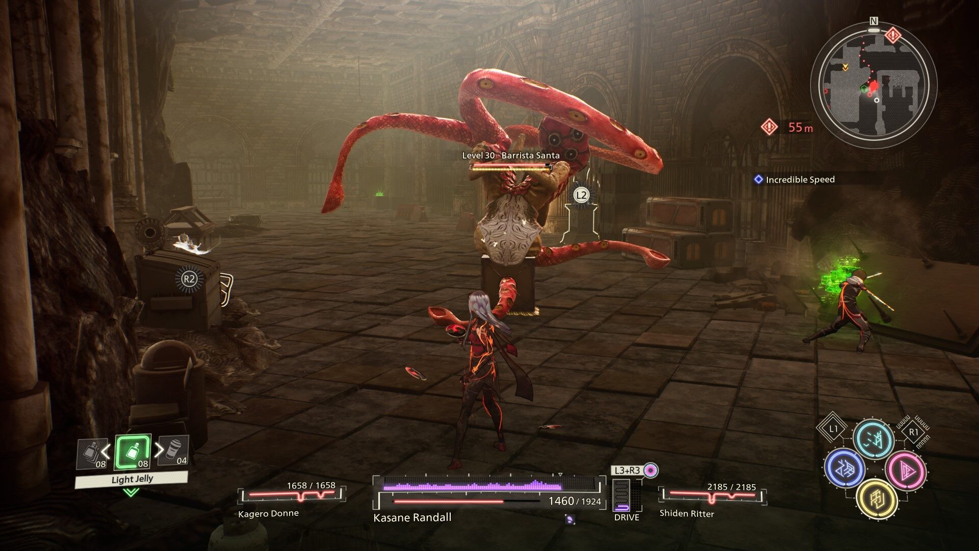 Choćby wspomniana wcześniej Persona od przynajmniej kilkunastu lat romansuje z tego typu projektami przeciwników i swoje już w Internecie zebrała za co głupsze z nich. Jasne, lepiej tak, niż genericowe pokemony za wrogów (grzech wielu innych gier tego typu), ale wybaczycie jednak państwo, jeżeli nie będę trząsł portkami na widok komody z włochatymi łapami, kilkoma mackami i karuzelą na plecach. Wisienką na torcie są nazwy przeciwników: ewidentnie ktoś, kto ma małe pojęcie o języku angielskim, wyciągnął przypadkowe słowa ze słownika i połączył je w coś, co brzmiało według niego „cool”. Nie spodziewałem się, że cokolwiek kiedykolwiek przebije w moim prywatnym rankingu generator imion bossów z Diablo 2, ale potem w Scarlet Nexusie oplułem się kawą, jak zaatakowała mnie ośmiornica po torturach Clive’a Barkera, która nazywała się… „Barista Santa”.