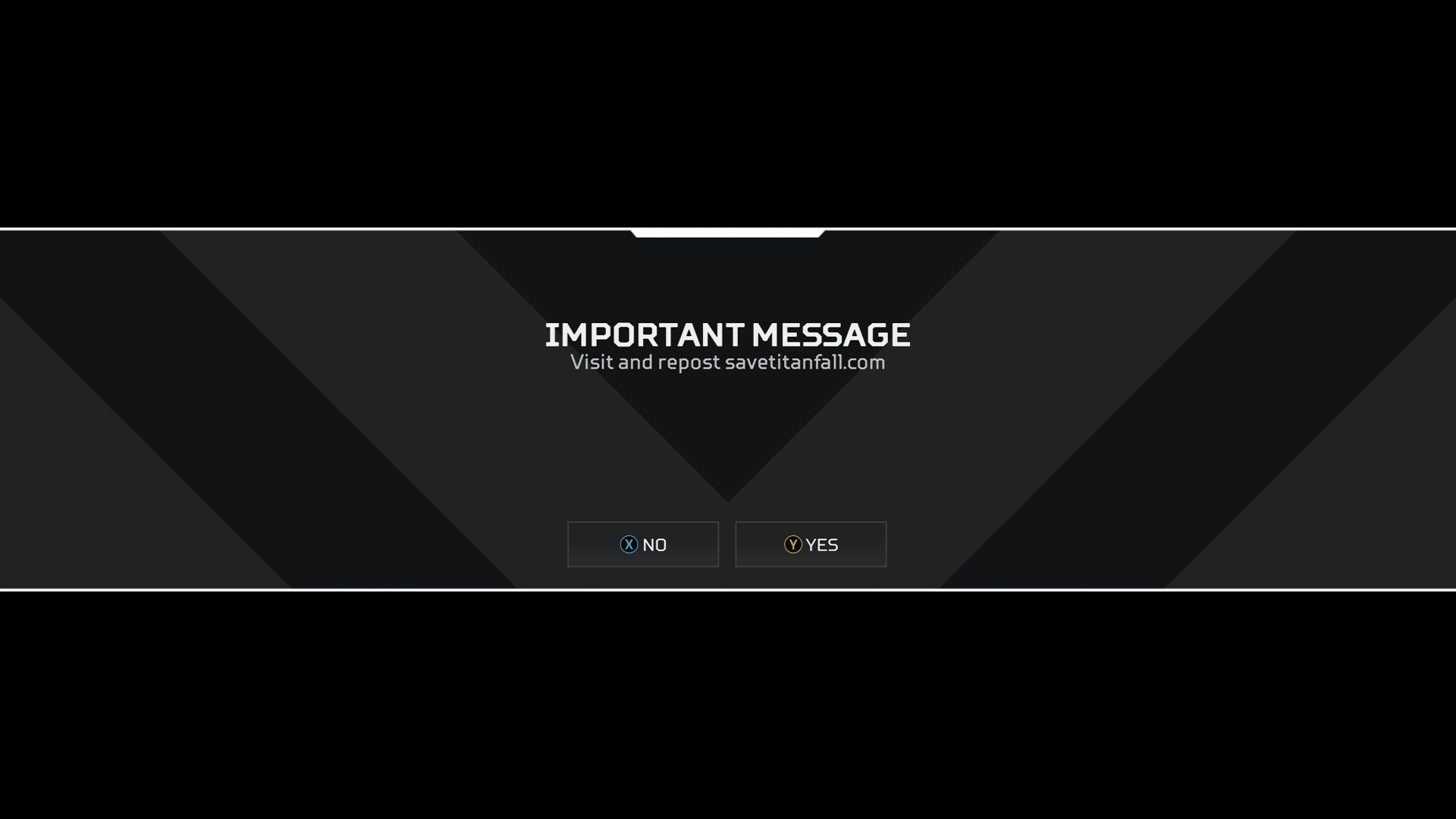 Jak donoszą użytkownicy z całego świata, zarówno na PC, jak i na konsolach, w grze dzieją się dziwne rzeczy. W samym lobby tryby gry są w większości zablokowane, a co jakiś czas na ekranie wyskakuje ważna informacja i link do strony savetitanfall.com.