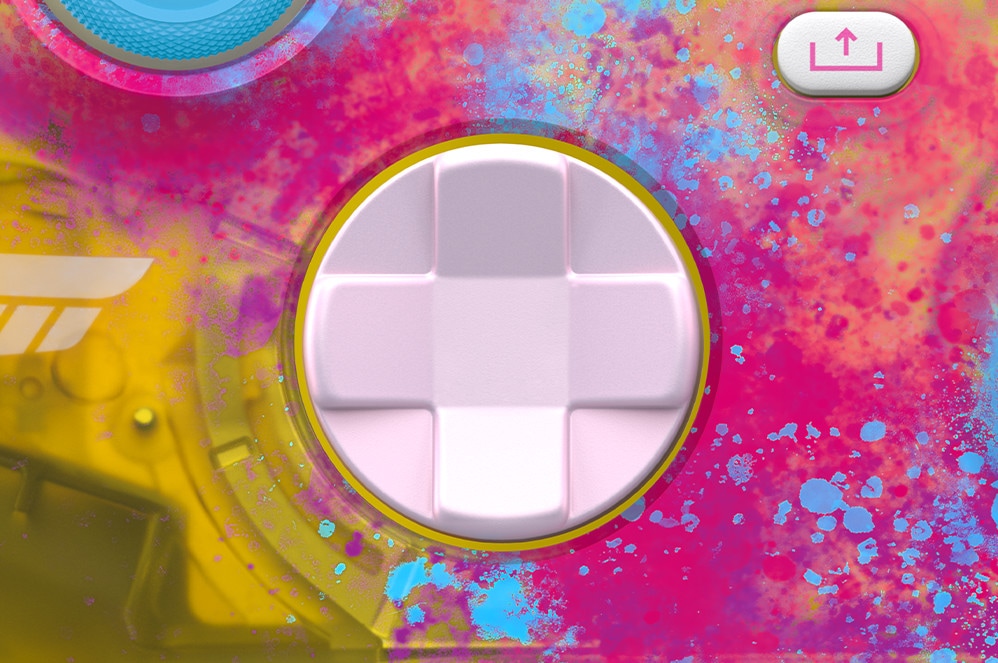 Żółty półprzeźroczysty korpus, chlapnięcia w kolorach akcentowych i analogi w dwóch różnych kolorach — niebieskim i różowym. Tak w skrócie prezentuje się najnowszy kontroler do Xbox One i Xbox Series.