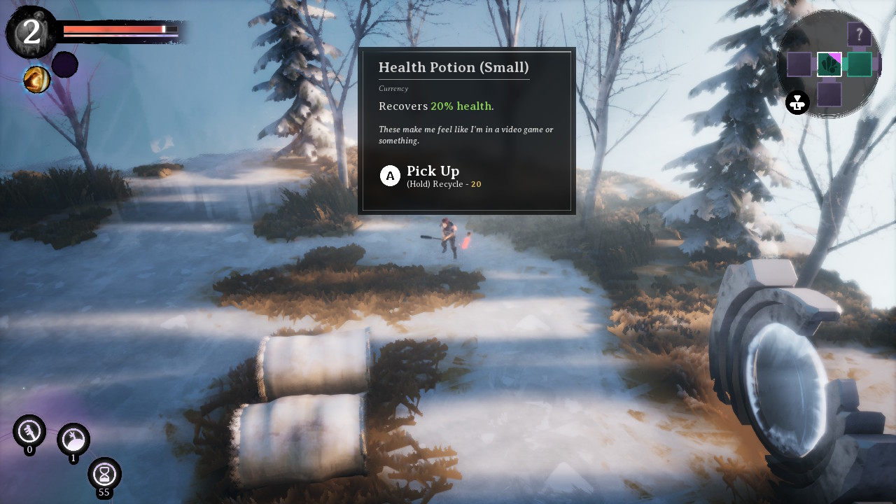 “Y” oraz “X” to atak bronią, którą aktualnie posiada. “A” to interakcja z otoczeniem, np. zmiana ekwipunku, który znajdujemy w tracie rozgrywki. “R” oraz “L” aktywuje ataki specjalne, “ZR” odpowiada za atak szerokiego zasięgu, a “ZL” sprawia, że bohaterka wyciąga tarczę. Wciśnięcie lewego joysticka pozwoli nam wybrać miejsce na planszy, dostępne w prawym górnym rogu.