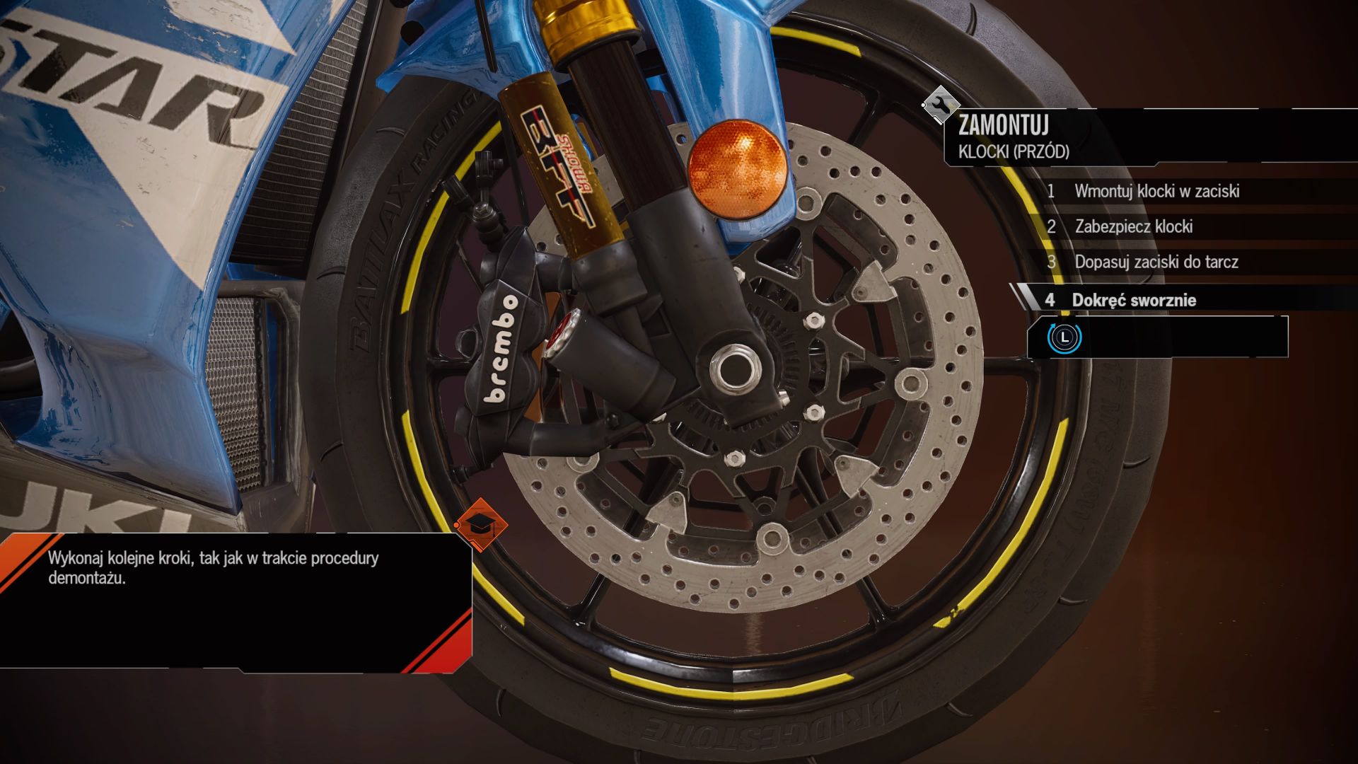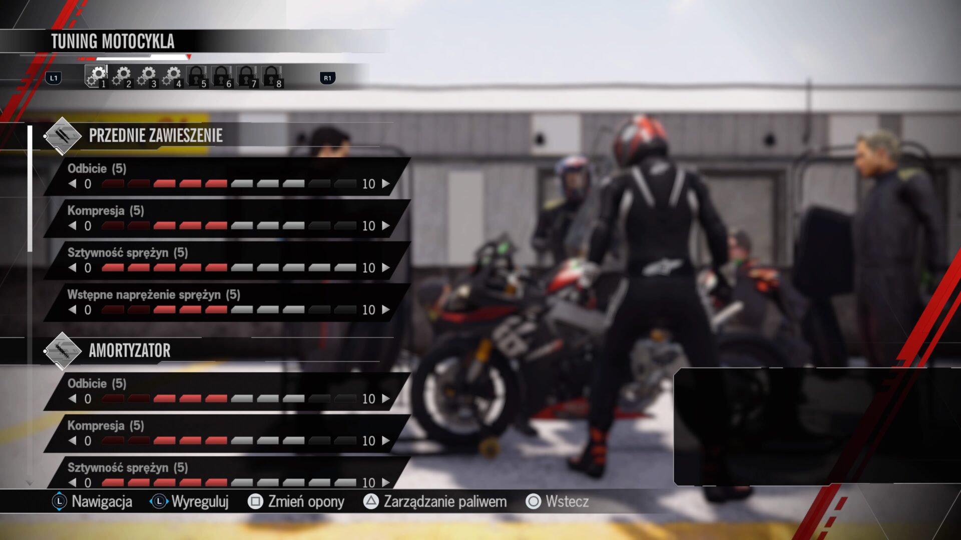 Teraz to w naszych rękach jest dalszy los sprawności naszego motocykla. Nie od dziś wiadomo, że o każdy element trzeba dbać! W warsztacie sprawdzamy stan zużycia klocków hamulcowych, elektroniki, tarcz oraz innych komponentów, które zużywamy podczas wyścigów. Nawet ulepszenia w postaci lepszych manetek się znajdą. Wszystko w ramach zwiększenia komfortu jazdy po zwycięstwo.