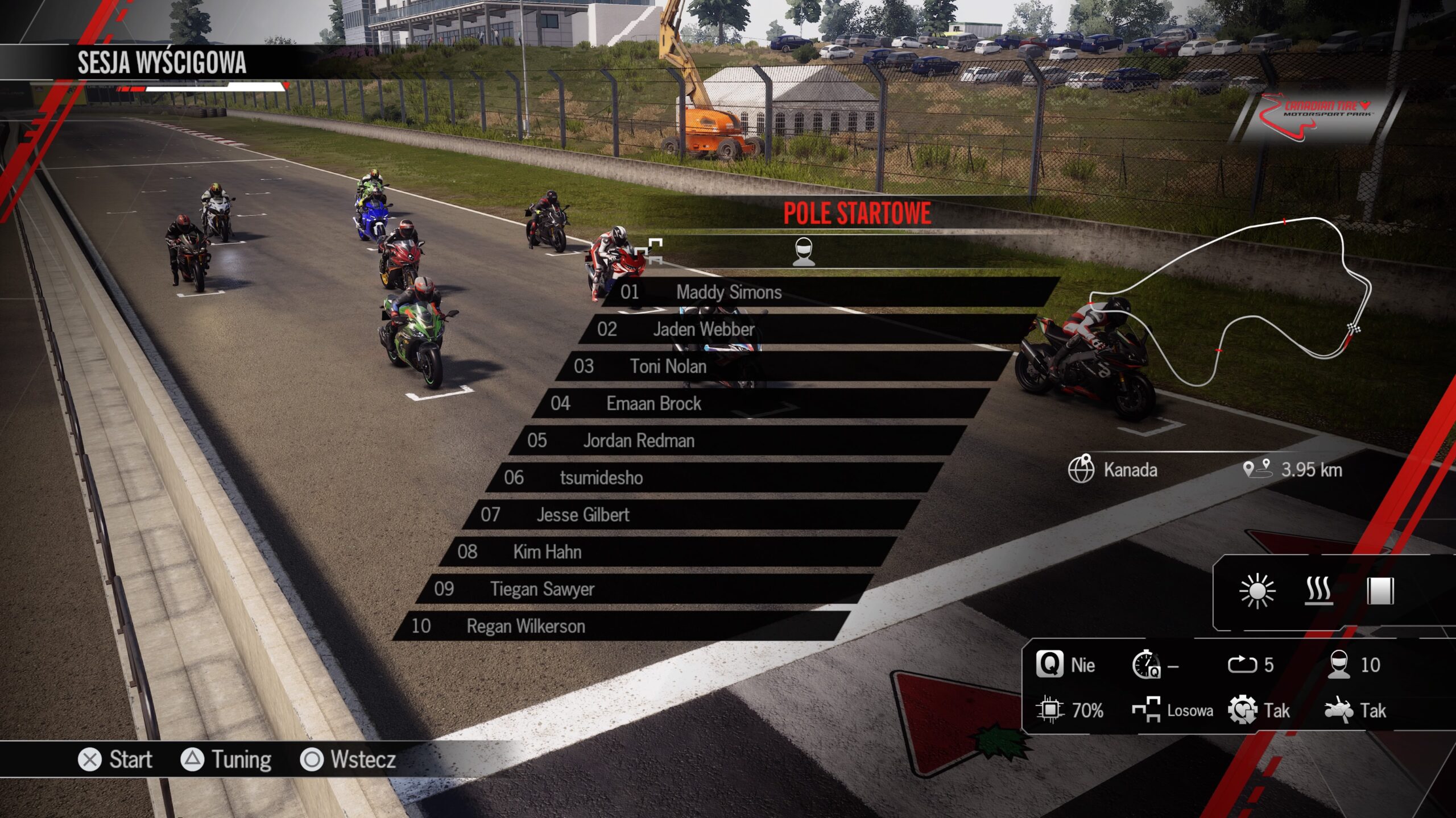 W tym miejscu potrzebuję pomocy. Dotarło do mnie, że jestem w to gorsza niż ktokolwiek inny. Chociaż przyznaję, że działaniem DualSense na PS5 jestem zachwycona. Mówiąc krótko – “R2” jest odpowiedzialne za dodawanie gazu. Każdą zmianę biegu oraz każdy wystrzał z wydechu czujemy na padzie. Nie mówiąc już o tym, że kontroler wręcz z nami jedzie po żwirze/trawie. Jeżeli nasz zawodnik wyląduje w powietrzu (bo może ktoś jeszcze nie umie jeździć po torze tak jak ja), to chcąc dodać gazu jeszcze zanim zawodnik powróci na motocykl, będzie to niemożliwe. Poczujemy opór, który zniknie dopiero po powrocie do gry.