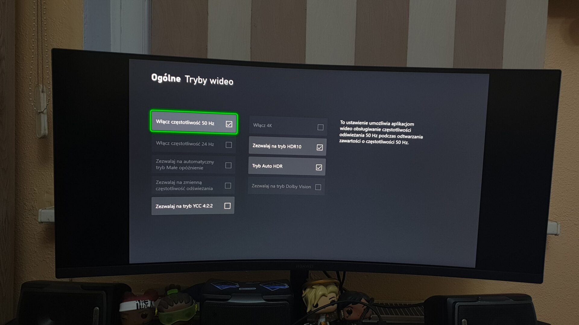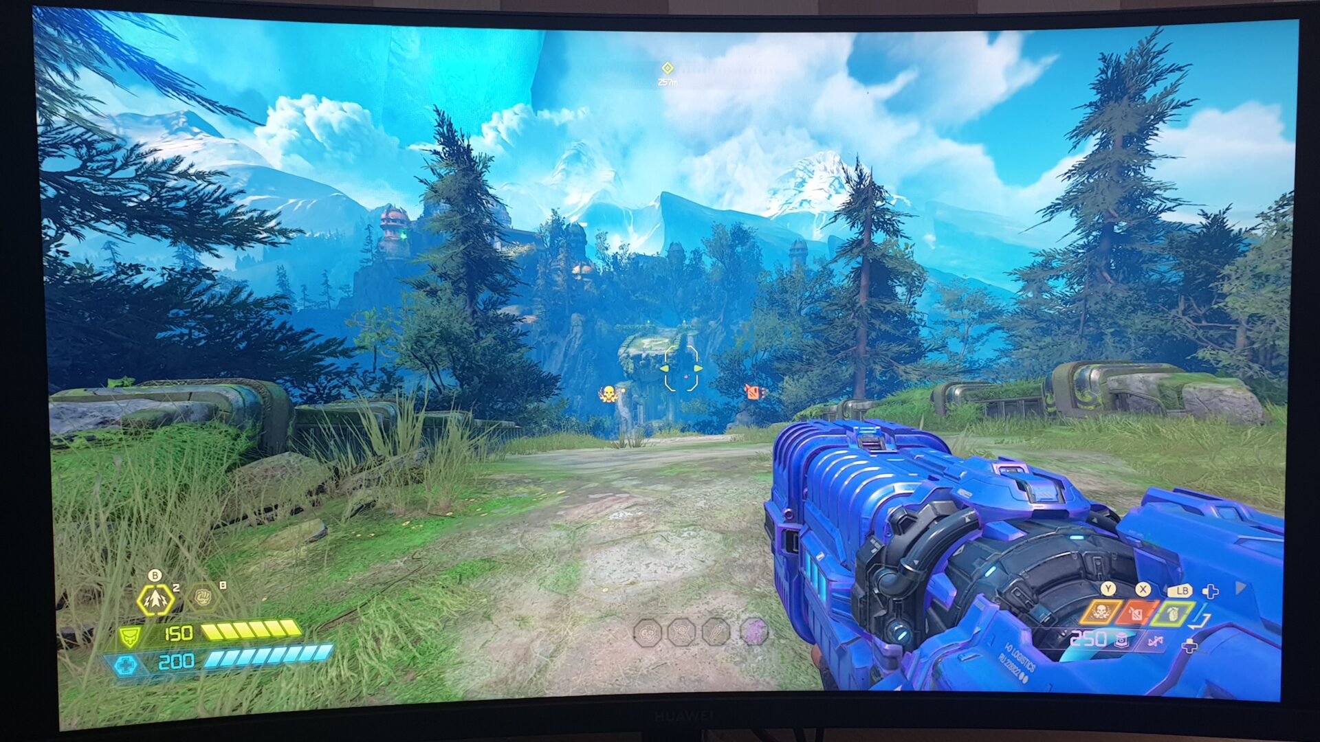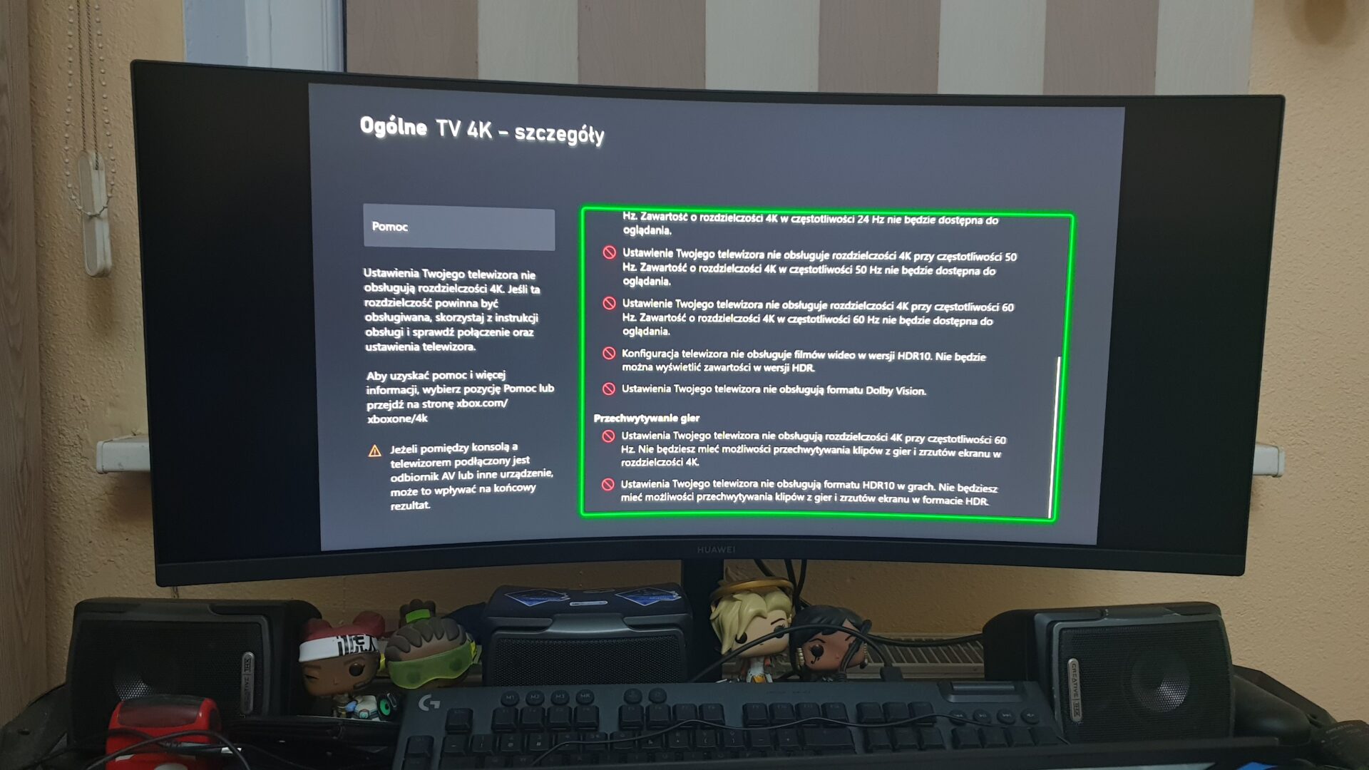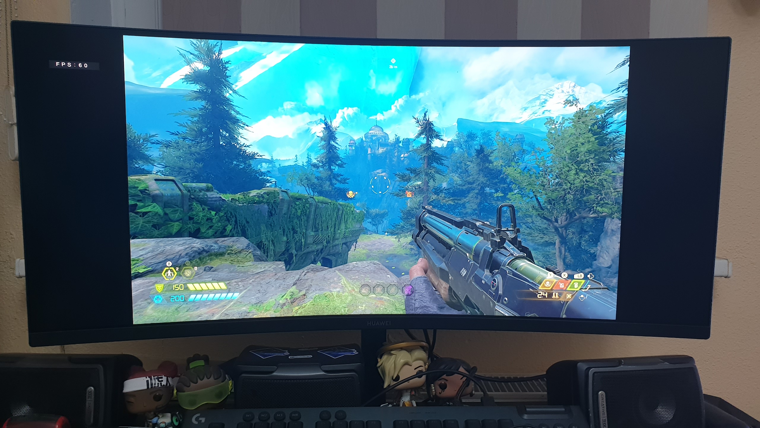Zakrzywienie o promieniu 1500R, 34 cale, ultra szeroki ekran 3K o proporcjach 21:9, HDR10, częstotliwość odświeżania 165 Hz, FreeSync oraz soundbar stereo z dwoma wybudowanymi mikrofonami. Takimi parametrami firma Huawei wita się z graczami. Niestety tylko posiadacze PC wykorzystają 100% jego możliwości. Nowoczesne konsole nie obsługują jeszcze proporcji 21:9. Xbox Series co prawda pozwala grać na ekranach o rozdzielczości 1440p, ale z automatu otrzymujemy dwa czarne paski na bokach. Na konsolach nie wykorzystamy też odświeżania 165 Hz. Niestety, nawet 120 herców nie wykorzystamy, gdyż monitor posiada dwa gniazda HDMI 2.0. Przypomnę, że do grania w 120 FPS wyświetlacz musi mieć najnowszą wersję portu – HDMI 2.1.