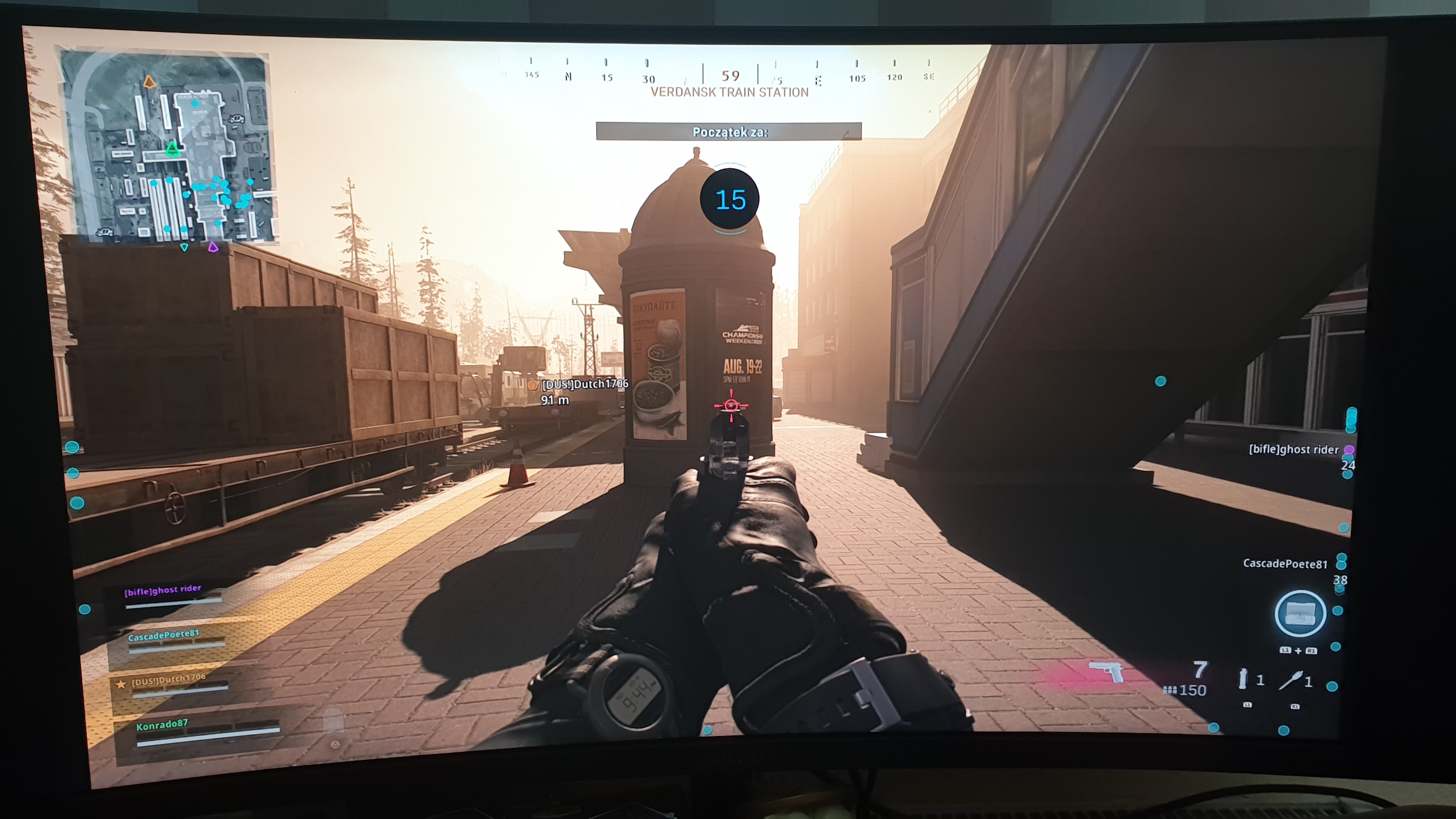 Menu monitora sterujemy za pomocą pięciokierunkowego joysticka. Wciskając go, wywołujemy menu, a dłużej przytrzymując- gasimy ekran. Huawei MateView GT pozwoli nam szybko dostosować ustawienia obrazu do różnych rodzajów gry. Możemy wybierać spośród 8 trybów wyświetlania, m.in: RTS, MOBA, czy FPS. Nie zabrakło też trybu Kino dla fanów VOD. Dodatkowym wspomagaczem dla graczy może być cyfrowy duży celownik, który aktywujemy na ekranie. Niestety, cyfrowy celownik działa poprawnie tylko z grami, której mają celownik broni idealnie umieszczony na środku ekranu (np. Doom Eternal, Apex Legends, Overwatch, Warzone i wszystkie Call of Duty).
